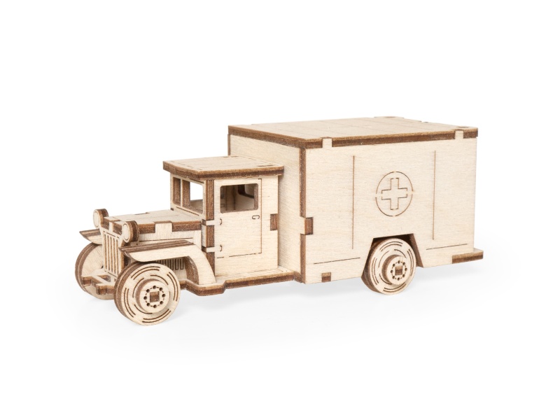 Конструктор 3D деревянный подвижный Lemmo Грузовичок Медицинский