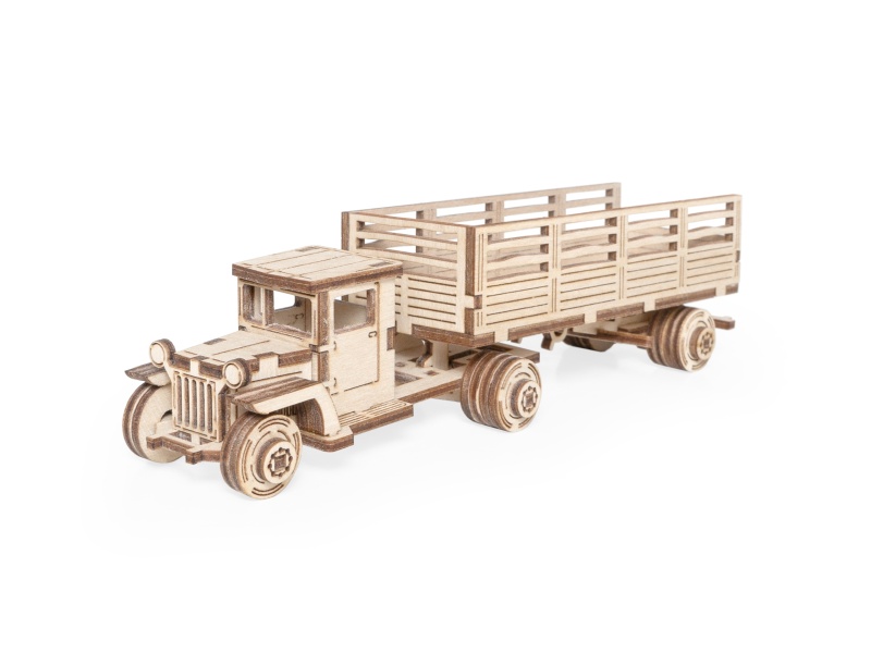 Набор Советский грузовик ЗИС-10 Тягач подходит для ребенка от 5 лет. У собранной модели вращаются колеса.