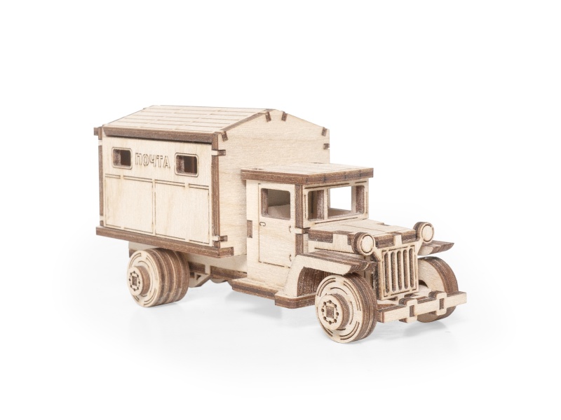 Набор Советский грузовик ЗИС-5 Почта подходит для ребенка от 5 лет. У собранной модели вращаются колеса.
