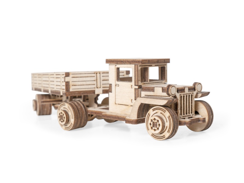 Набор Советский грузовик ЗИС с прицепом подходит для ребенка от 5 лет. У собранной модели вращаются колеса.