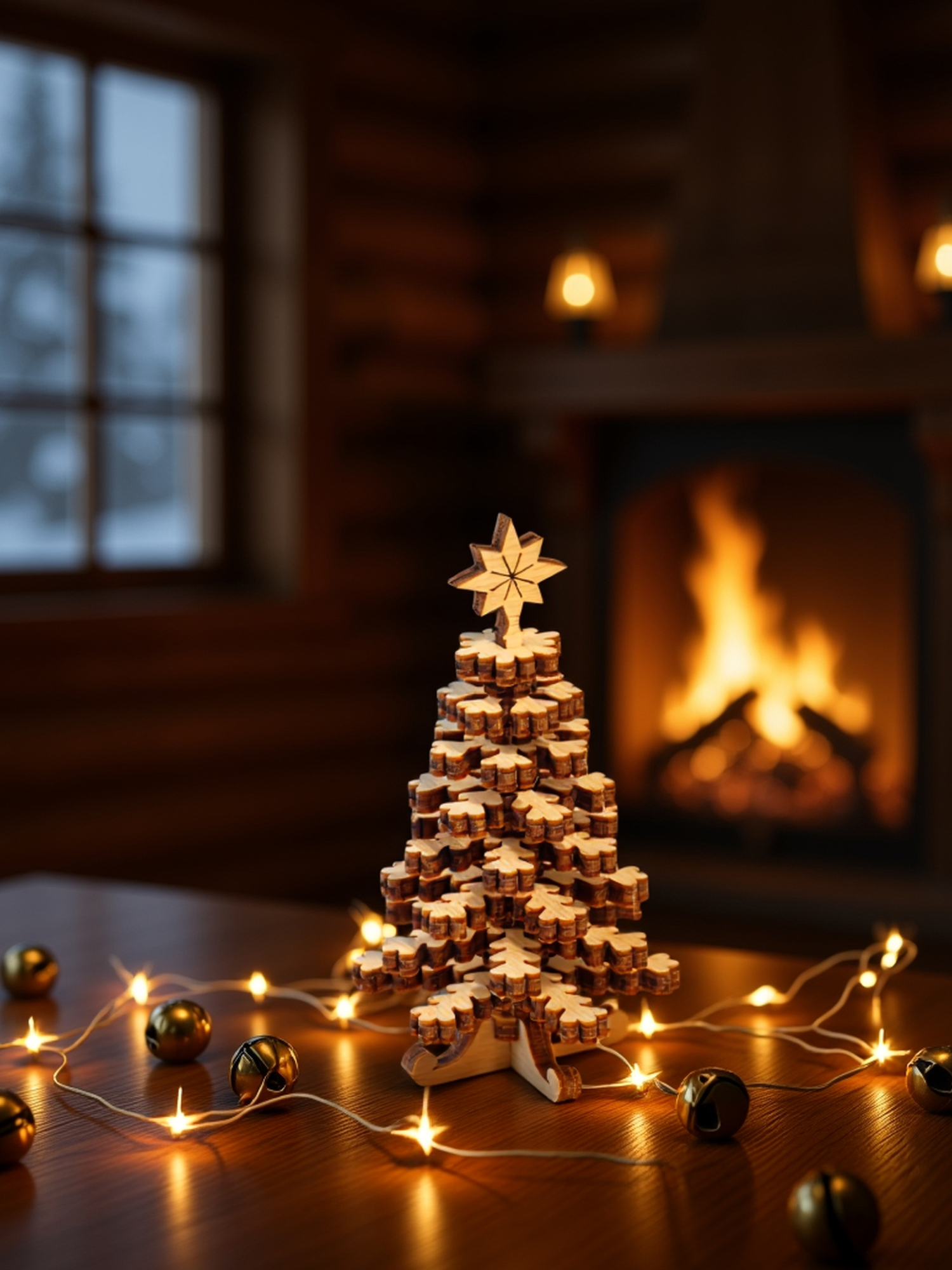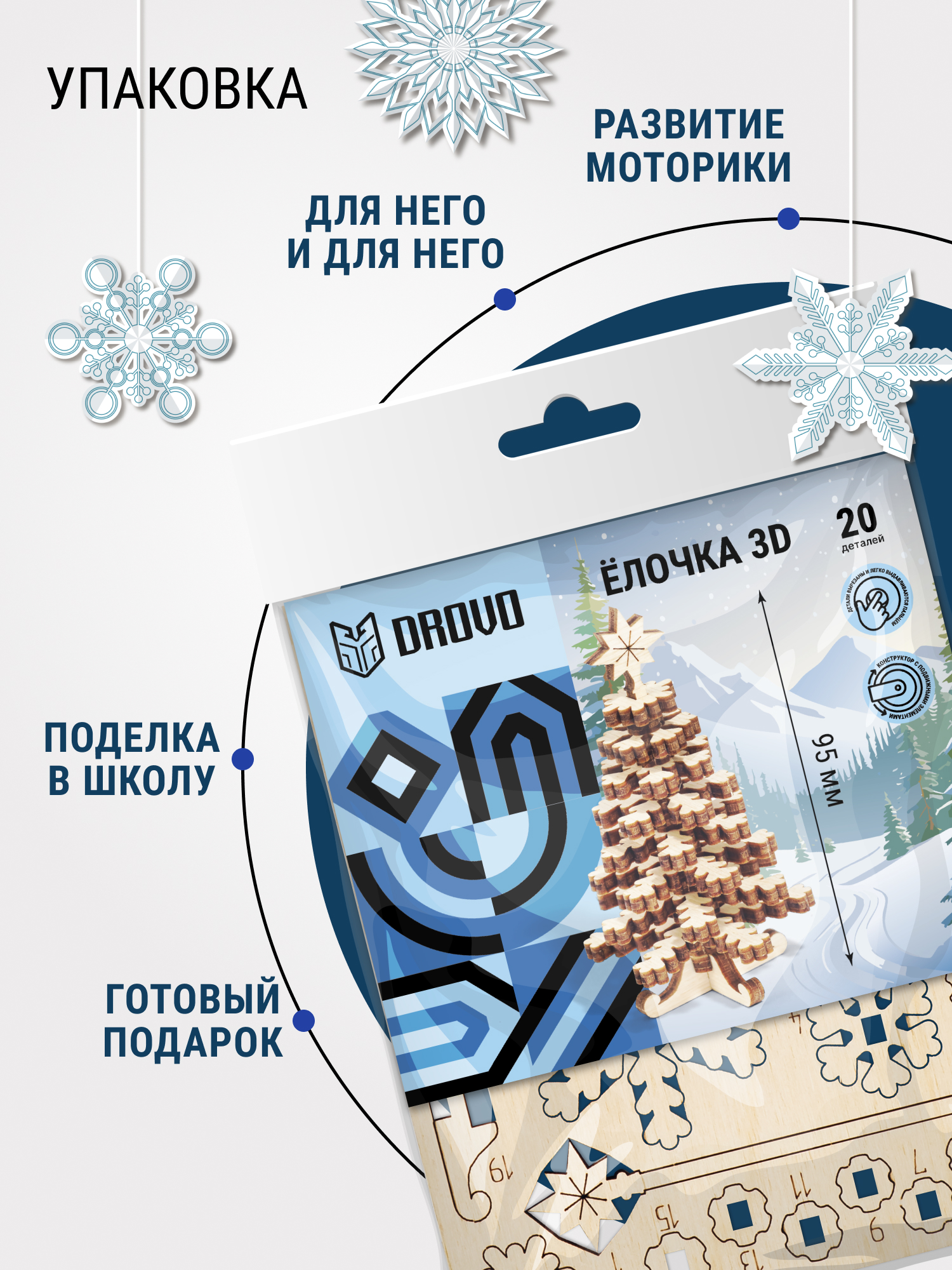 Деревянный конструктор DROVO Елочка 3D маленькая