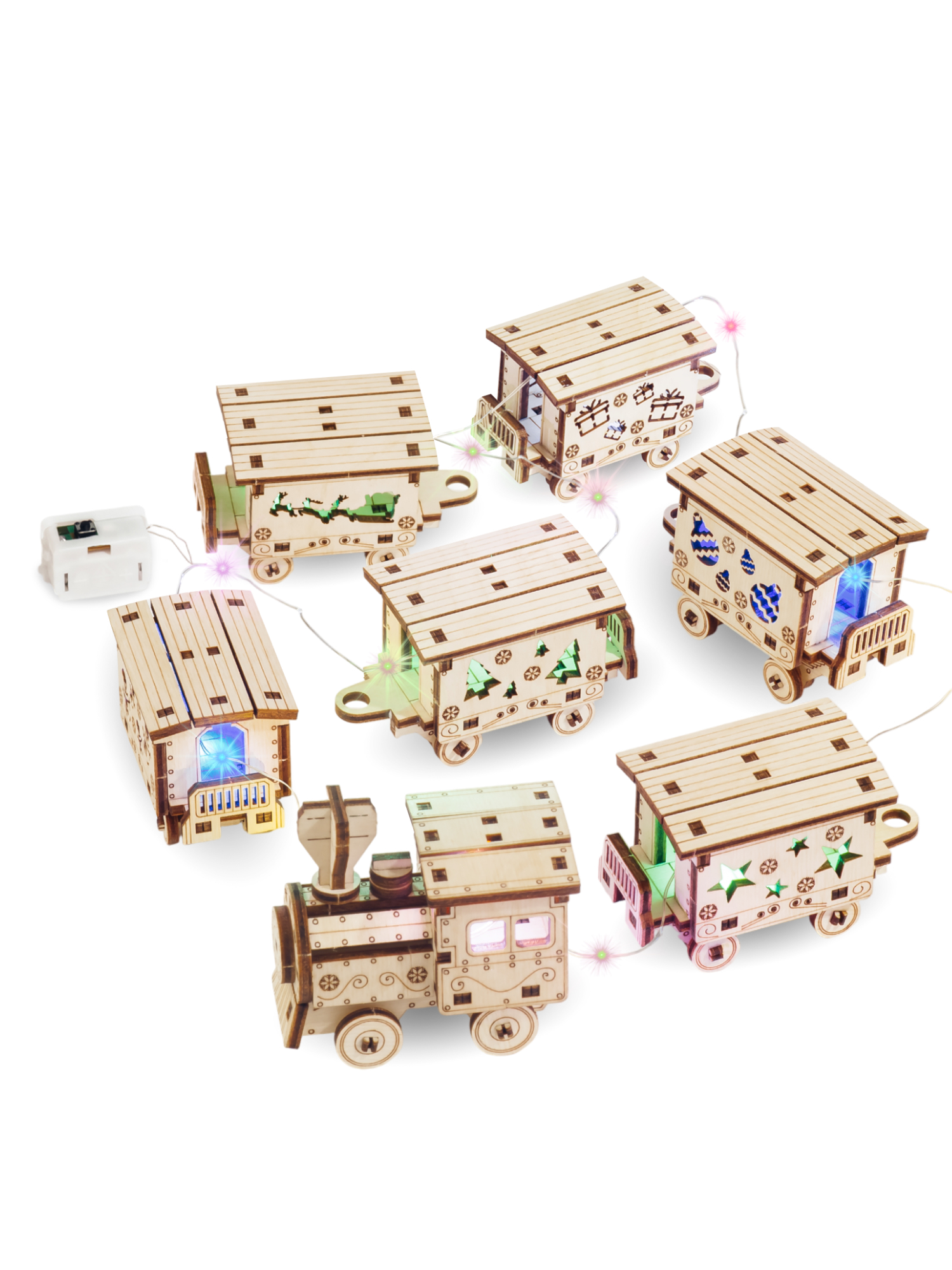 Деревянный конструктор DROVO Гирлянда Новогодний паровозик