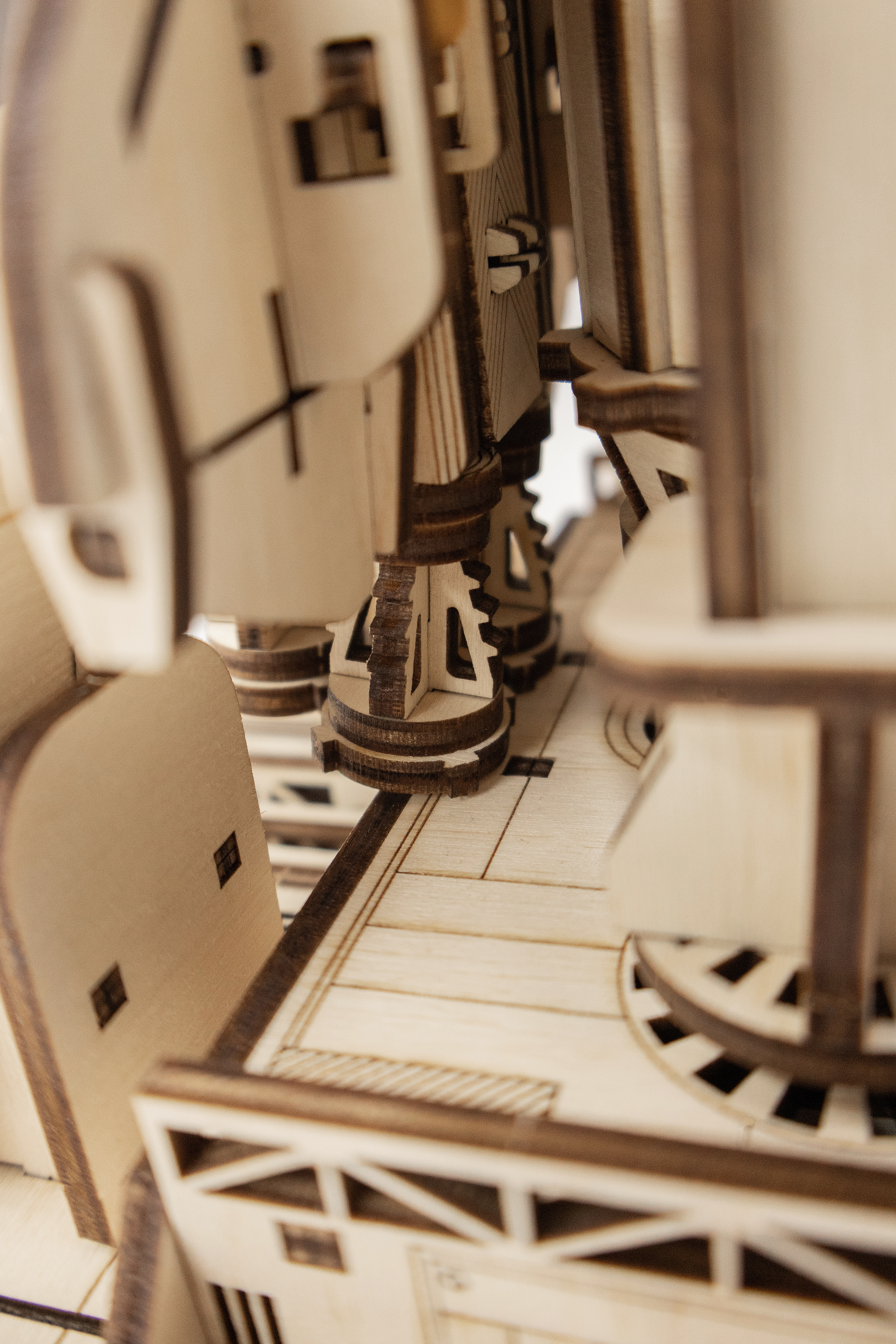 - 314 деталей — каждая вырезана лазером с микронной точностью, обеспечивая идеальное соединение без клея.