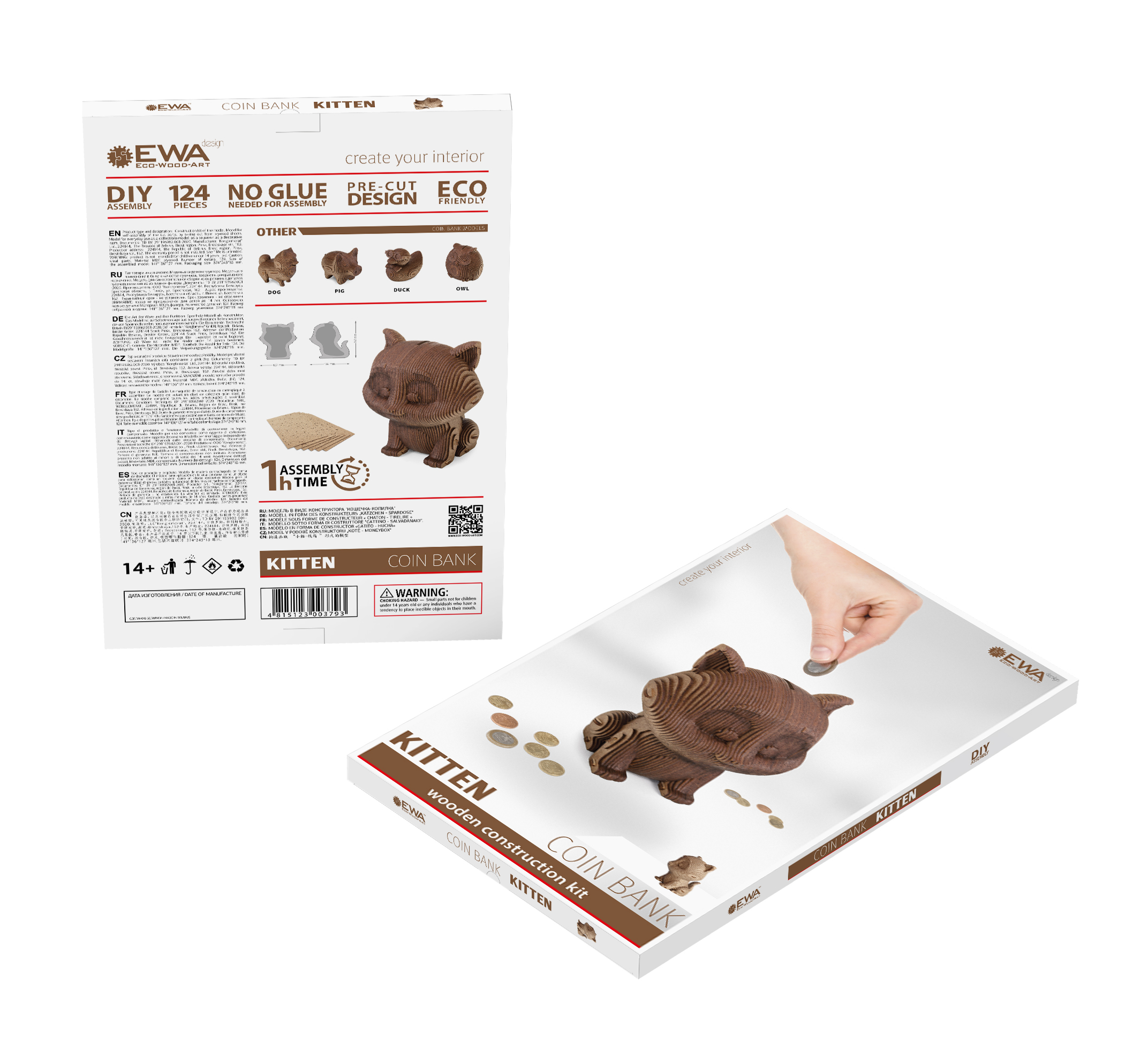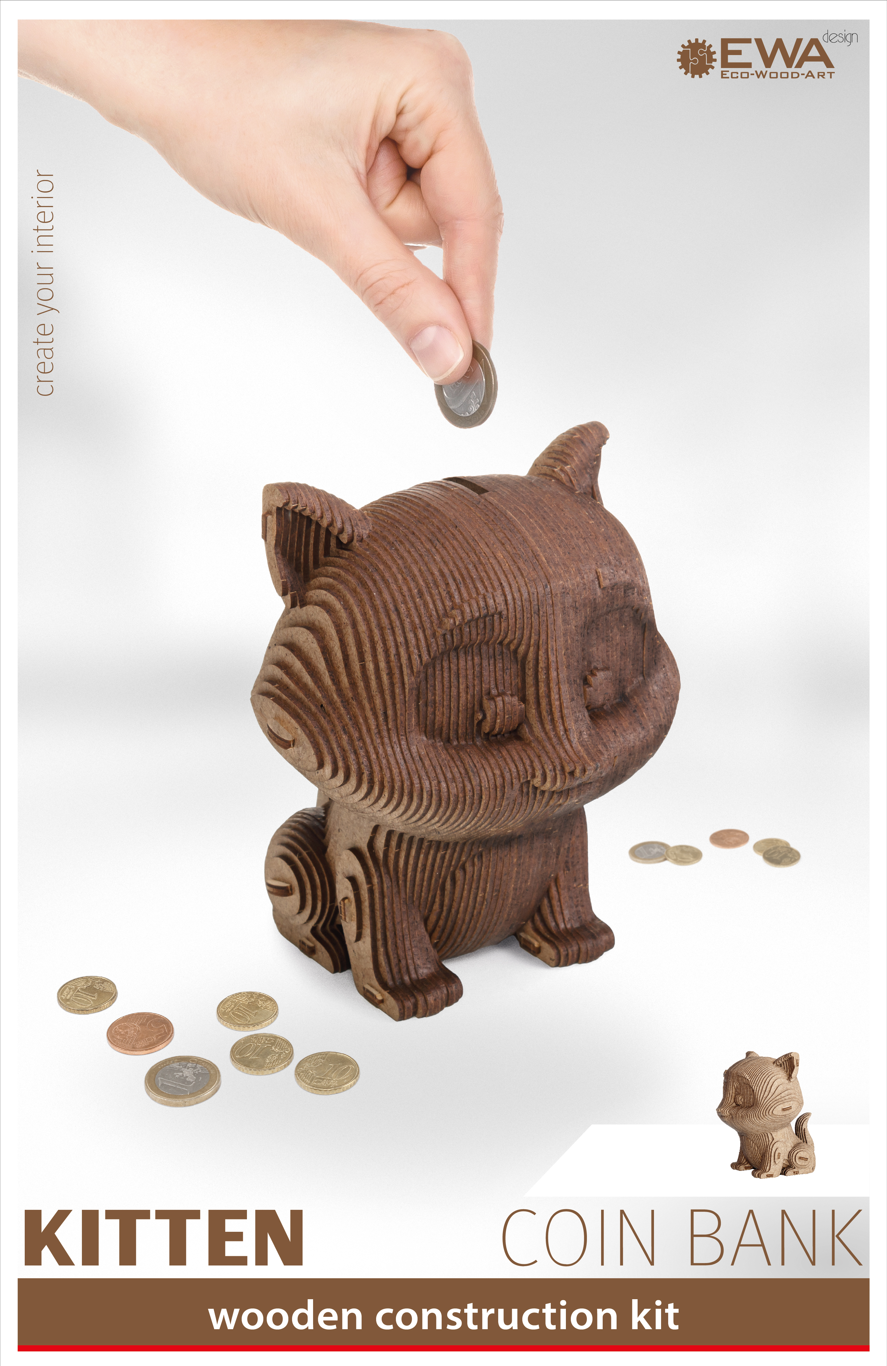 Деревянный 3D пазл копилка EWA Кошечка — это интерьерный 3D конструктор, изготовленный из экологичной древесины (хдф - ДВП высокой плотности). Это прекрасный подарок для любителей 3D конструкторов и моделирования, позволяет развить мелкую моторику рук, усидчивость и концентрацию внимания. 3d пазл из дерева понравится каждому, подойдет и для детей, и для взрослых.