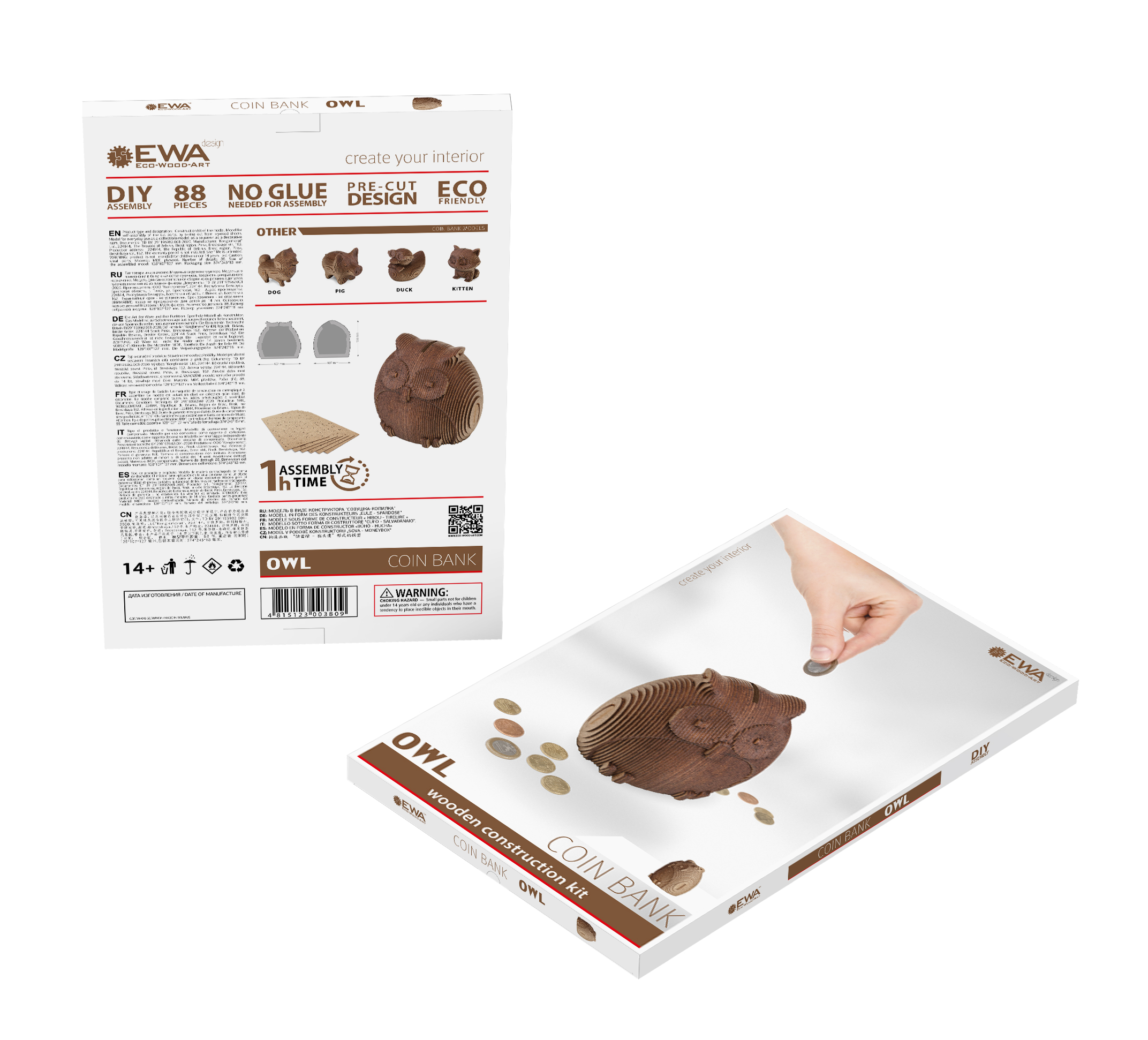 Деревянный 3D пазл копилка EWA Сова — это интерьерный 3D конструктор, изготовленный из экологичной древесины (хдф - ДВП высокой плотности). Это прекрасный подарок для любителей 3D конструкторов и моделирования, позволяет развить мелкую моторику рук, усидчивость и концентрацию внимания. 3d пазл из дерева понравится каждому, подойдет и для детей, и для взрослых.