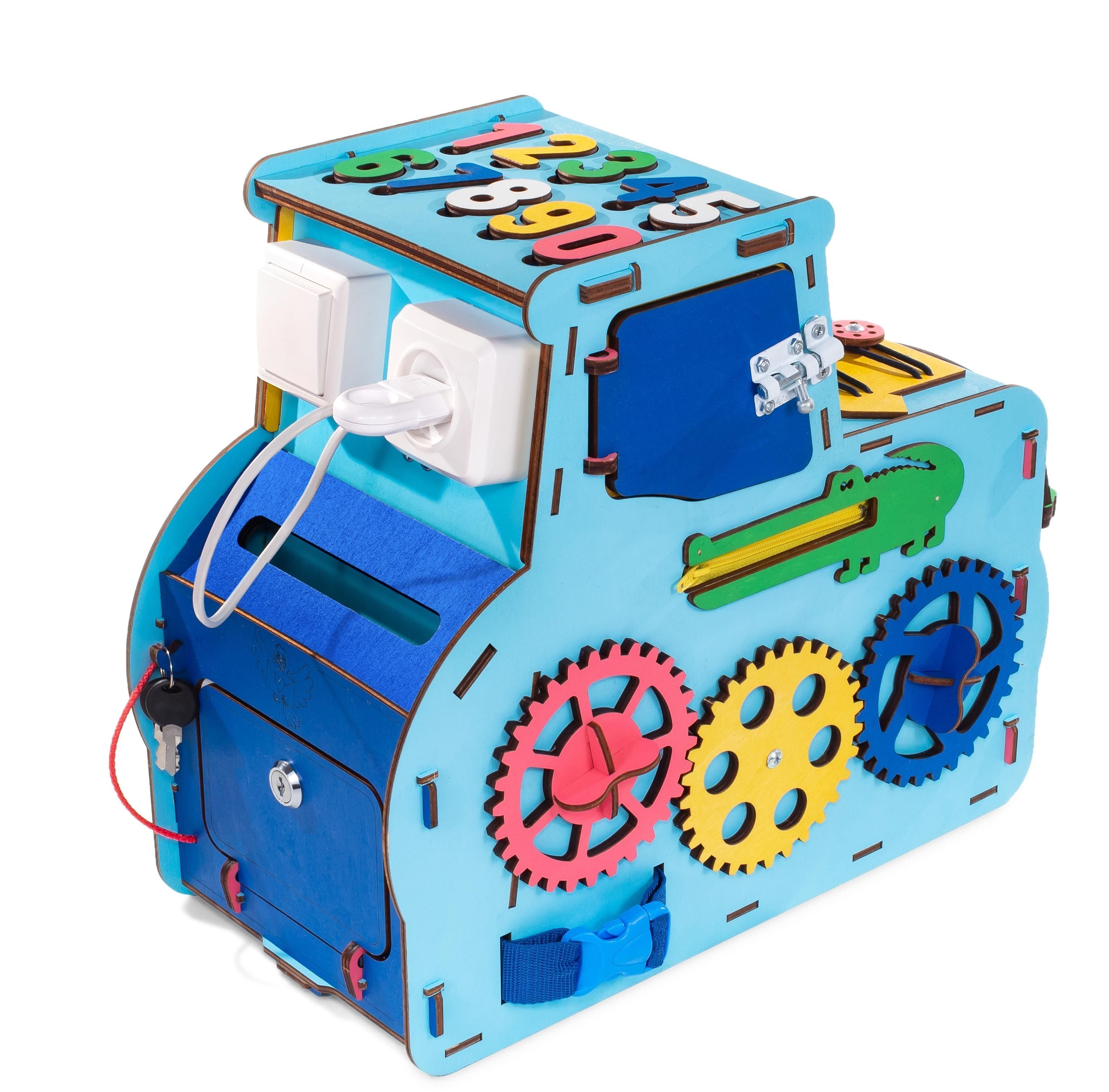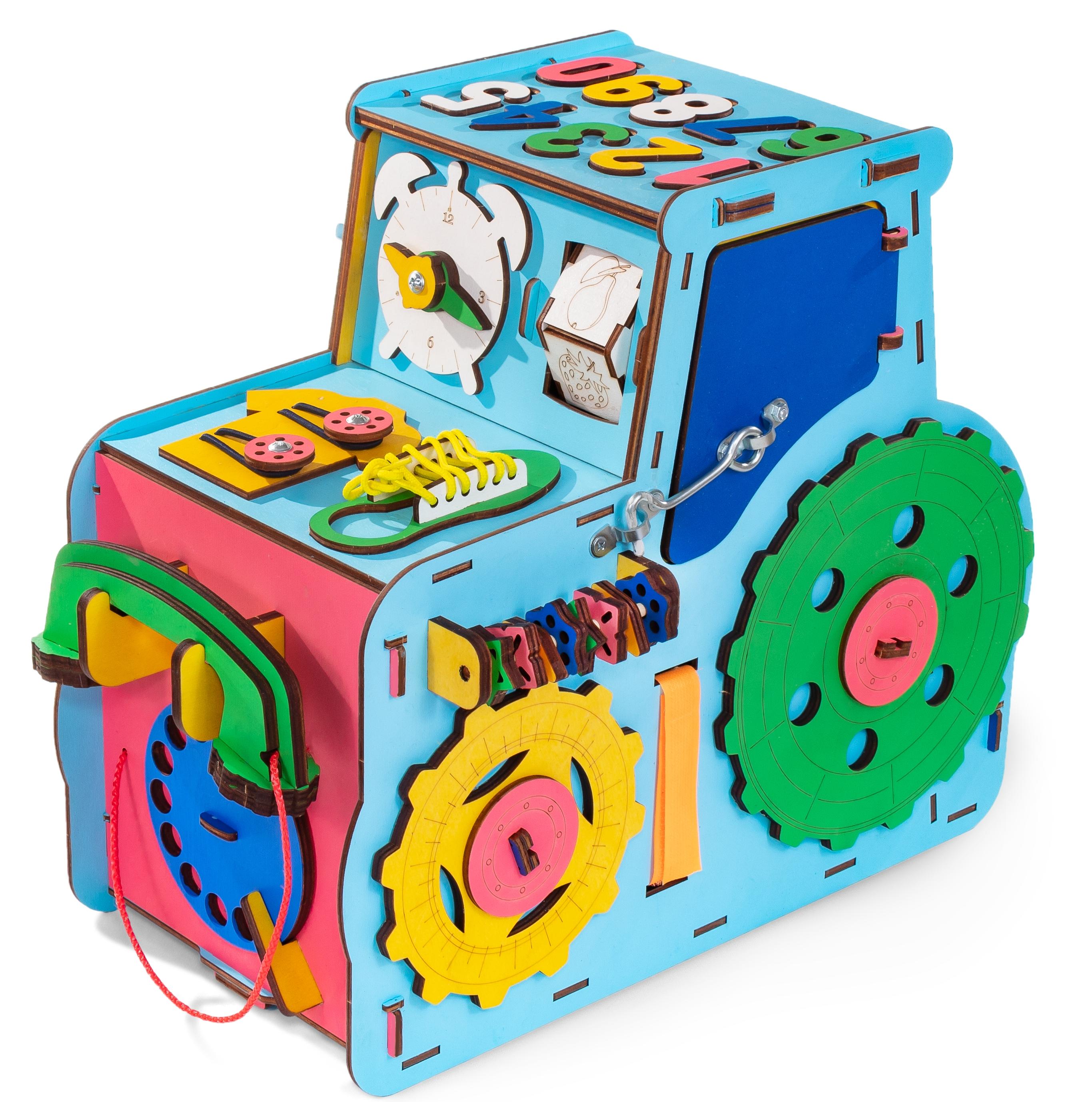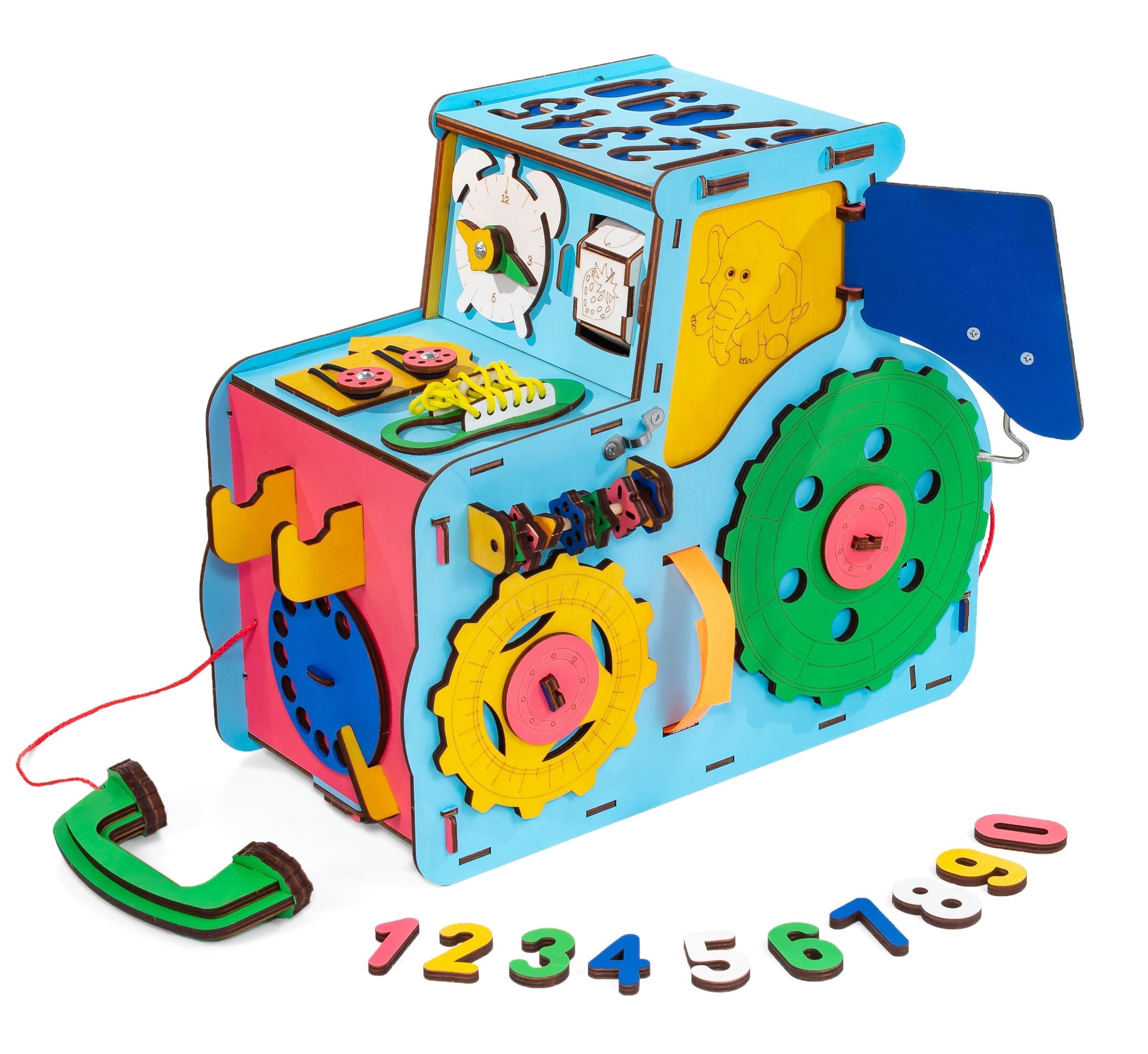 Игрушка развивающая Бизиборд из дерева — деревянный Трактор поможет вашим деткам увлекательно и, главное, безопасно исследовать этот мир. Это просто кладезь полезных и занимательных упражнений для малыша, которые способствуют развитию логического мышления, воображения и фантазии, усидчивости, а также помогают постепенно адаптироваться к бытовой среде. И самое главное, бизиборд незаменим для развития и тренировки мелкой моторики малышей.