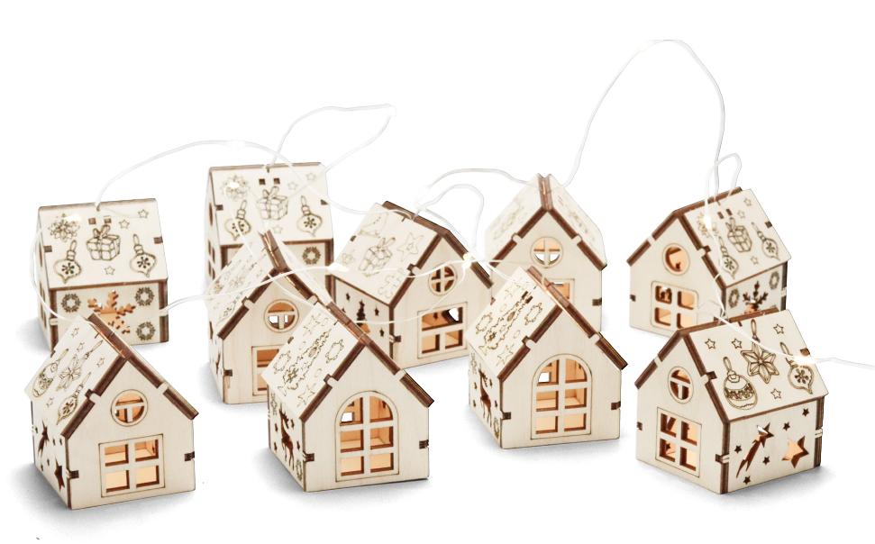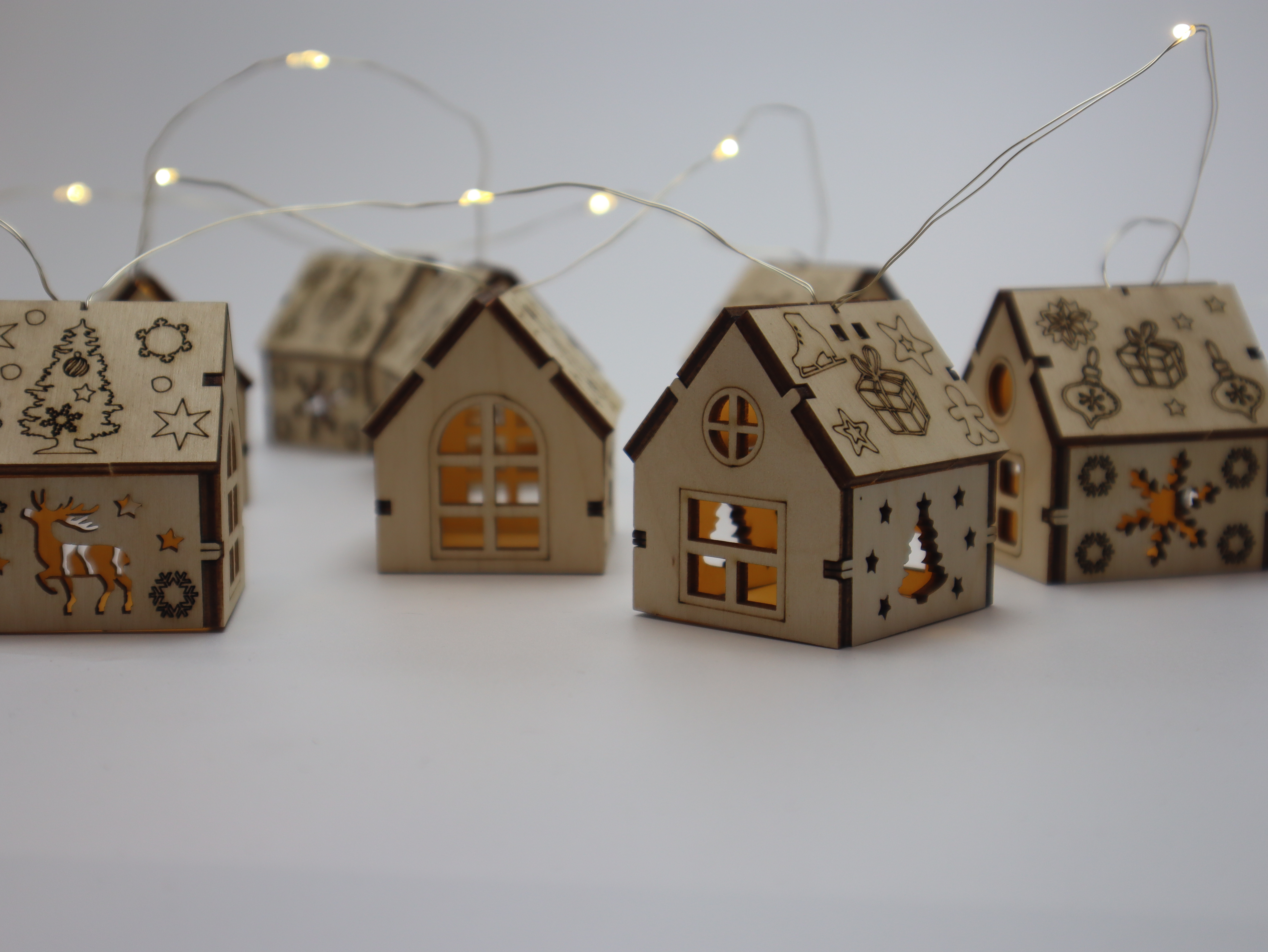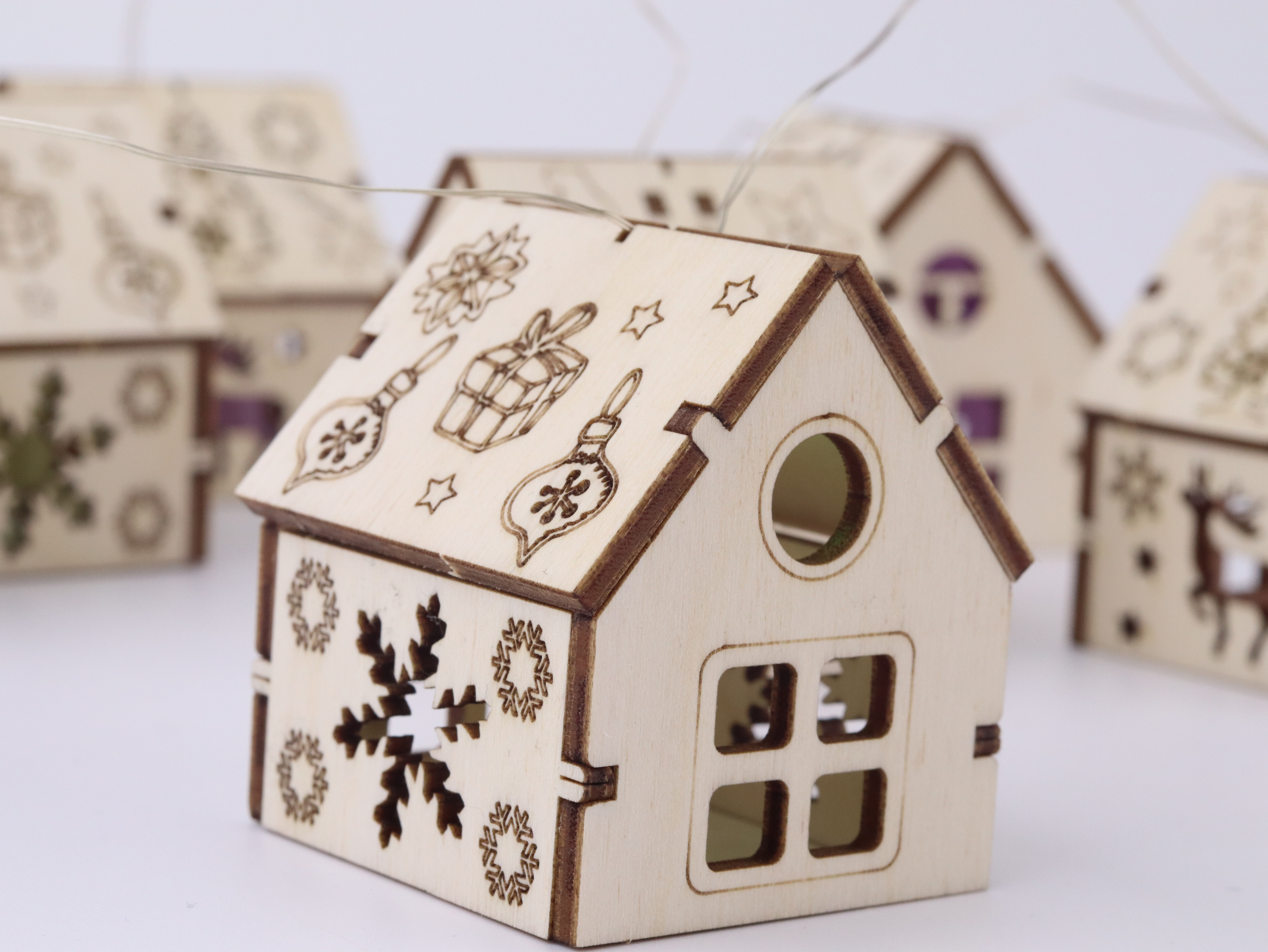 Деревянный конструктор DROVO Гирлянда Новогодние домики