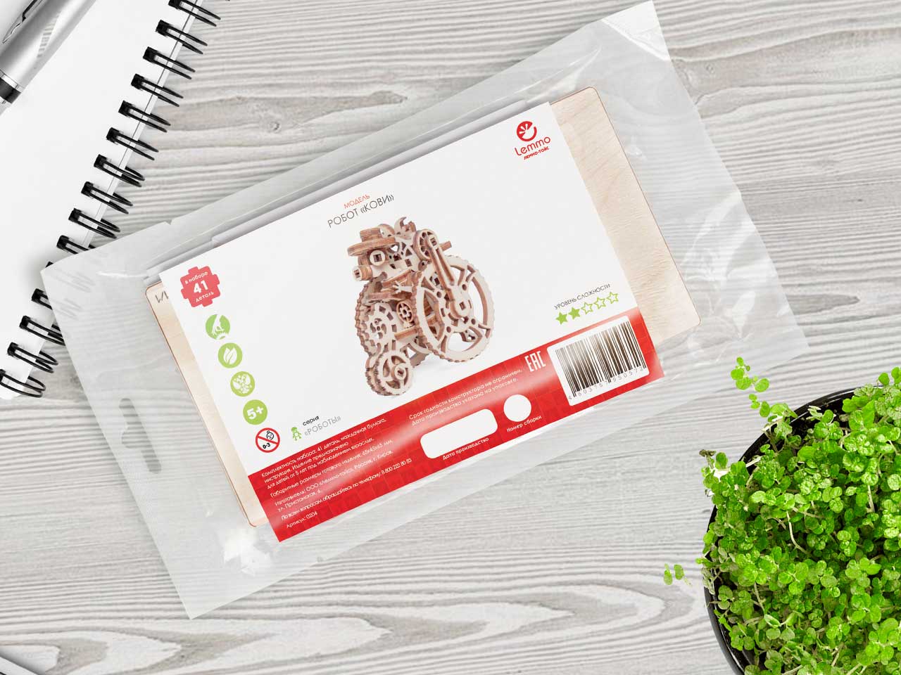 Деревянный конструктор Lemmo Крипики. Робот КОВИ