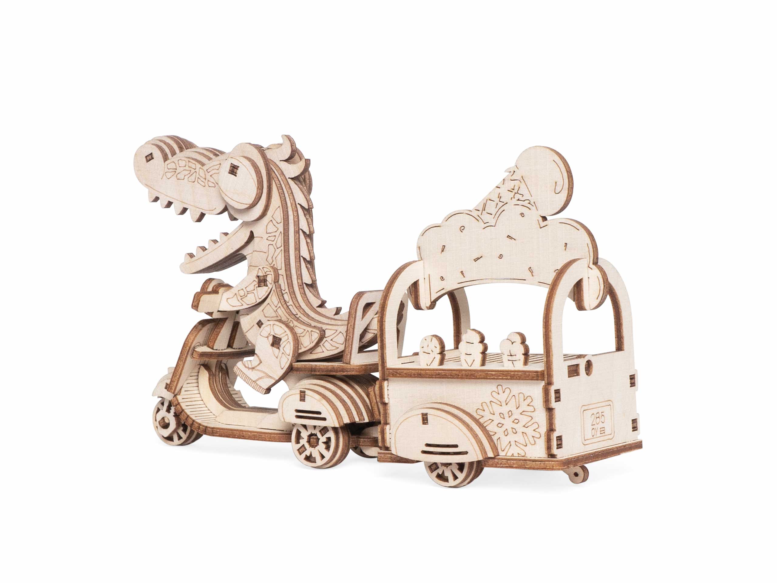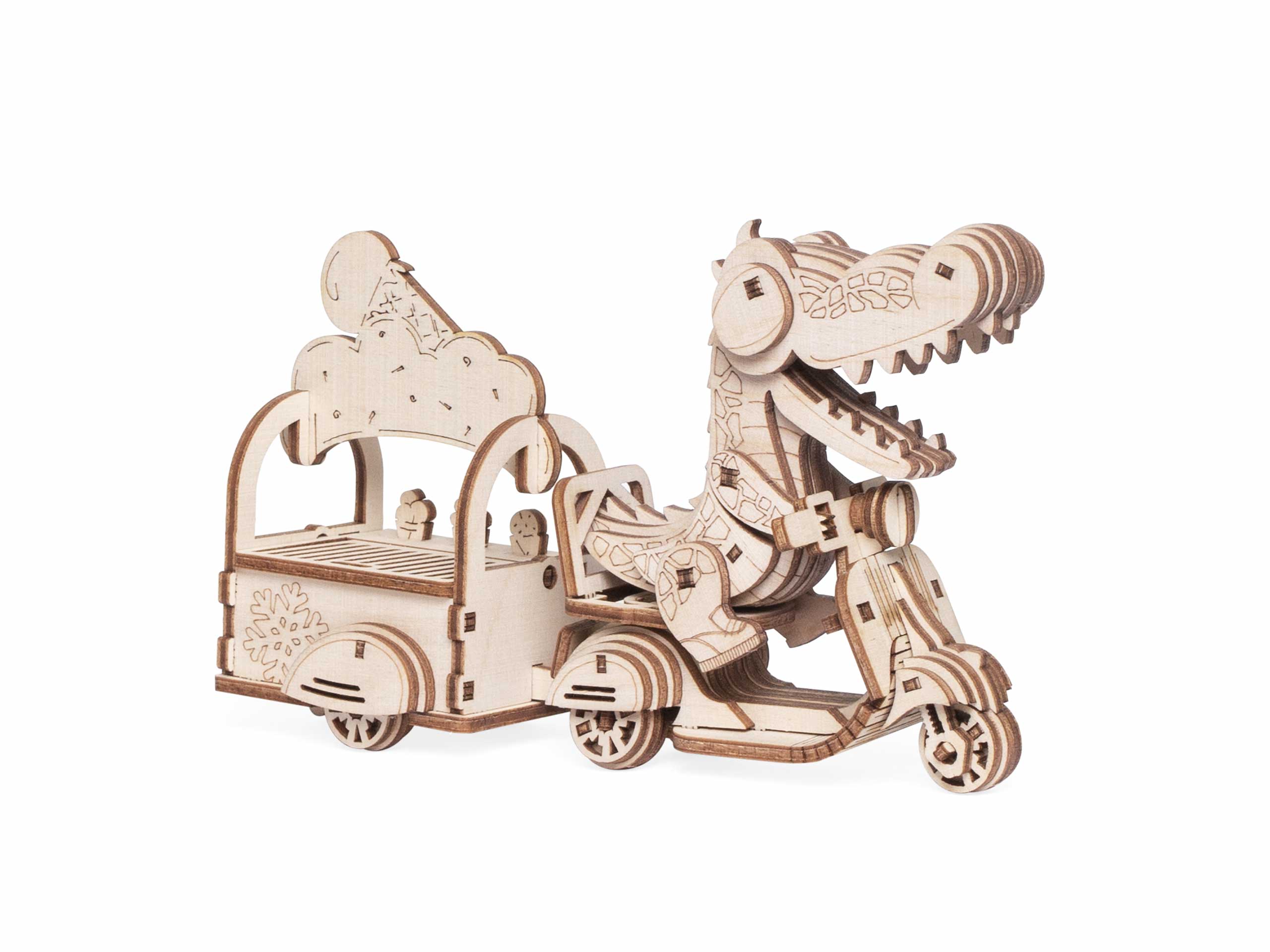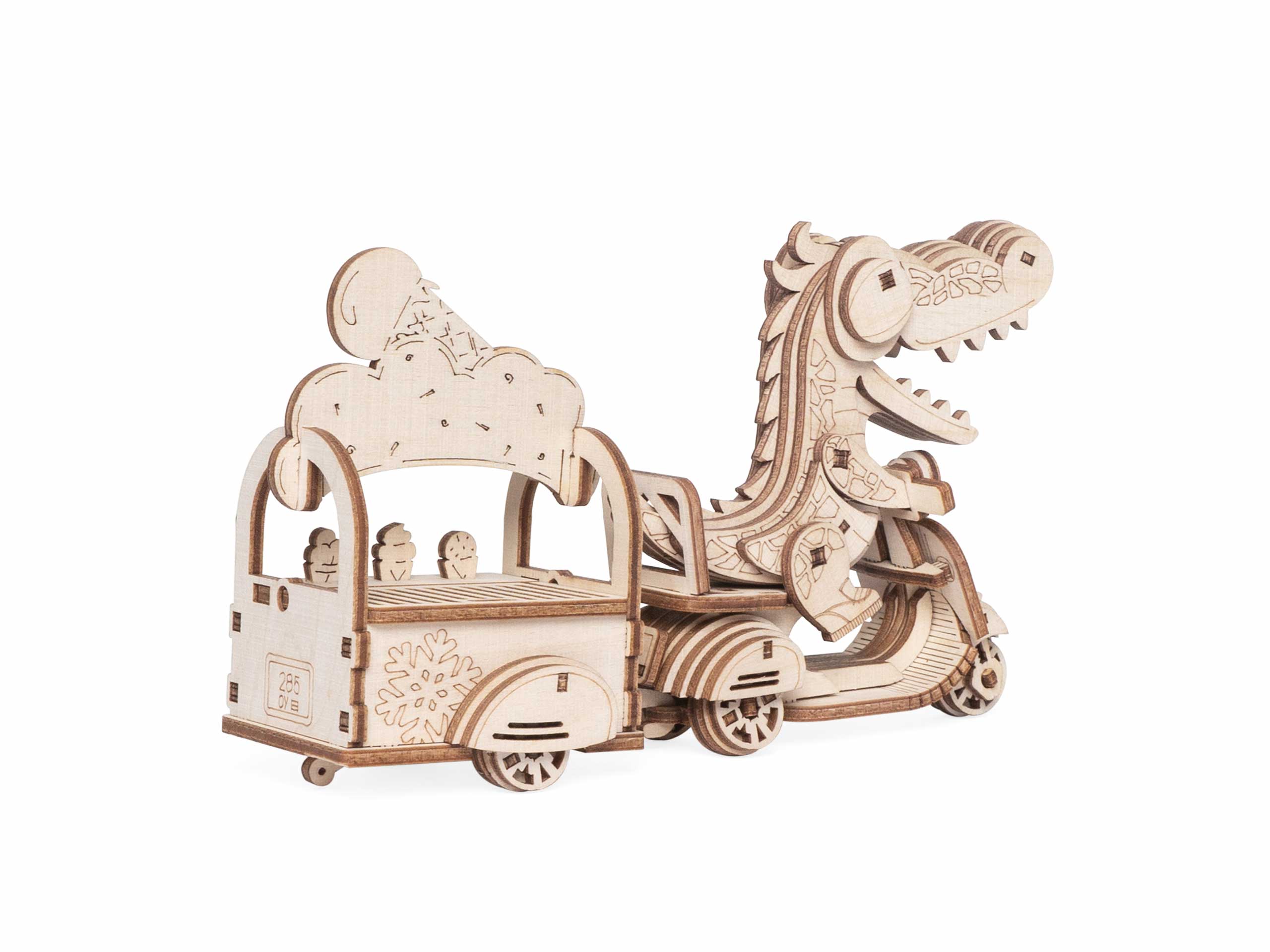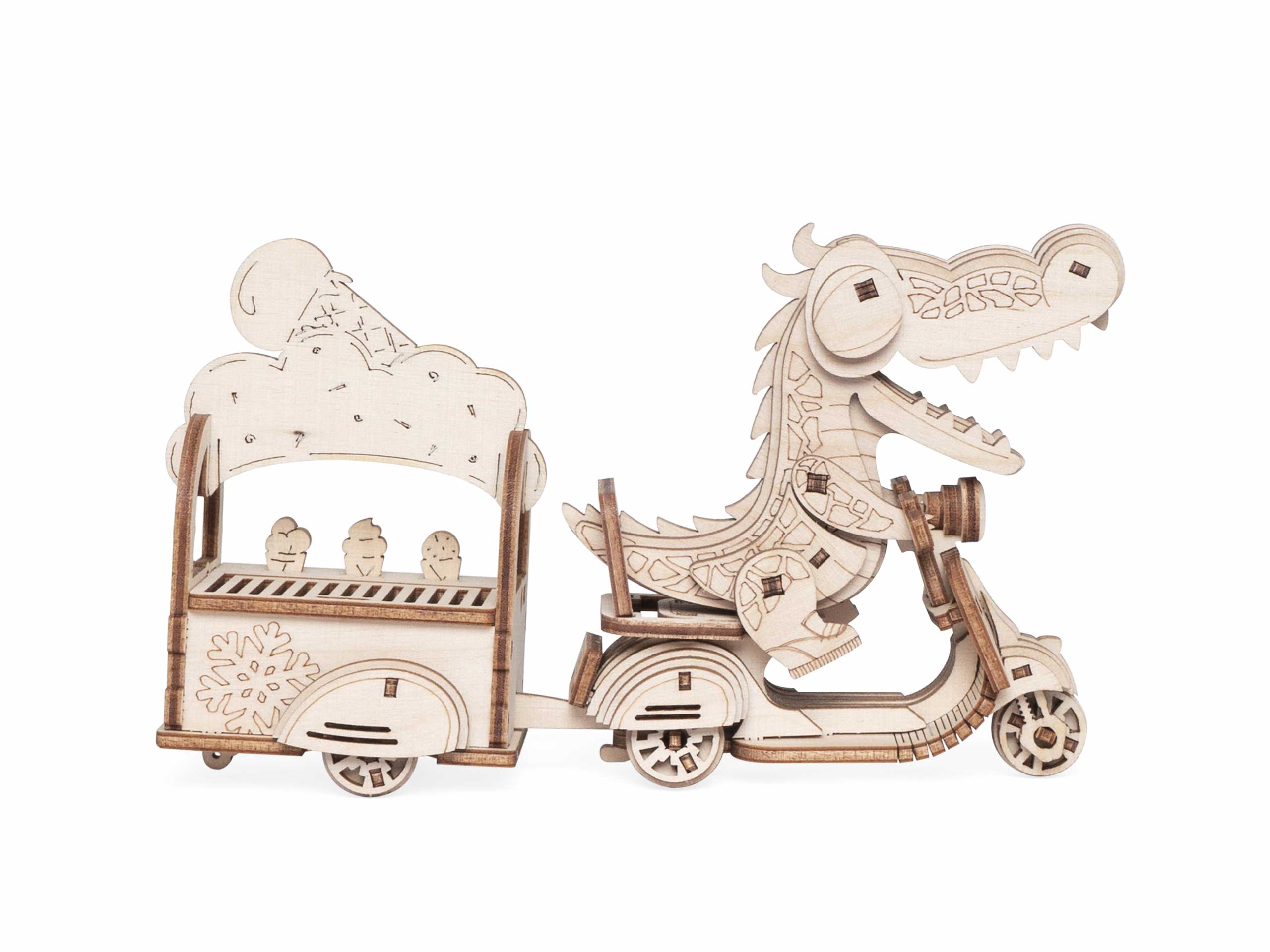 Дети могут складывать фигурки в тележку и зубастый милаха отвезет куда скажете. Сборная модель из дерева впишется под любой интерьер, после того, как дети наиграются.