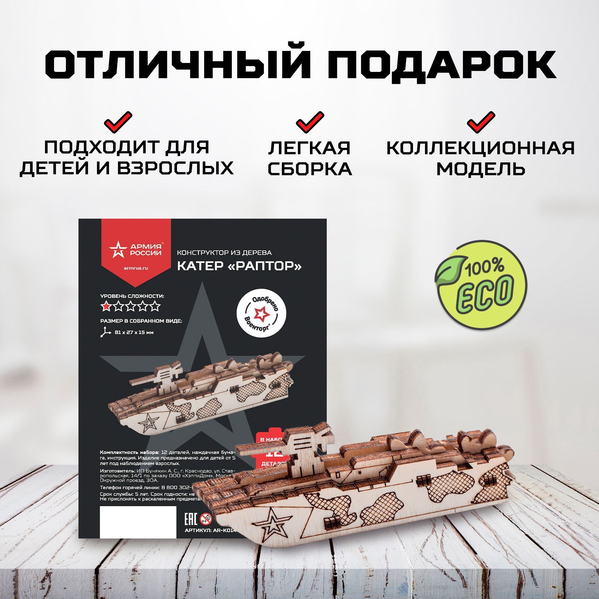 Деревянный конструктор, сборная модель Армия России Катер Раптор