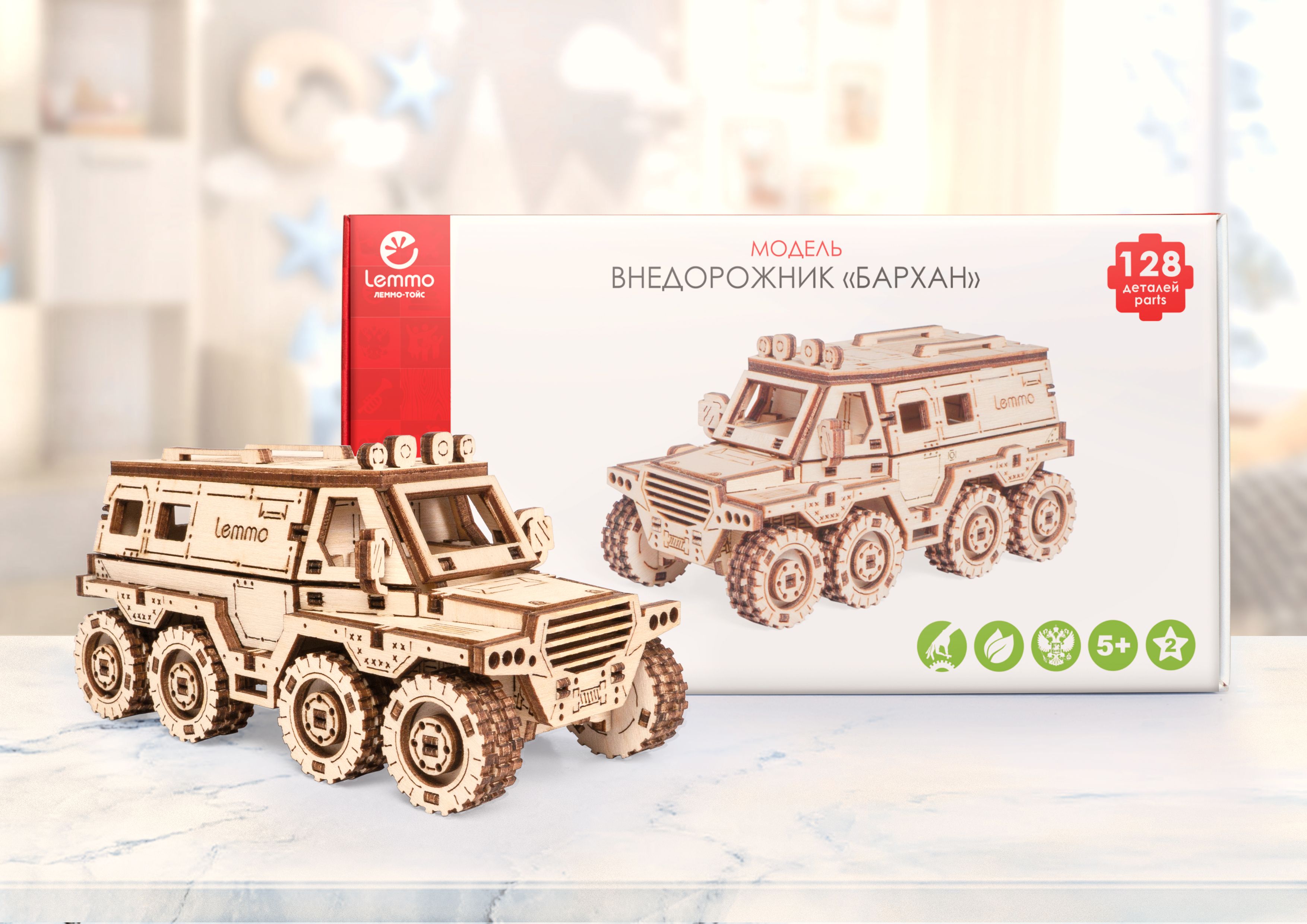 Деревянный конструктор, сборная модель Lemmo Внедорожник Бархан