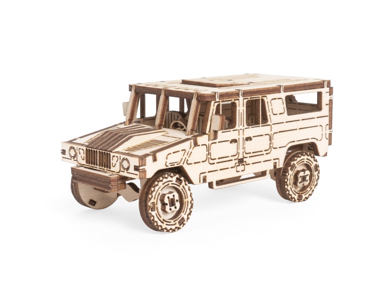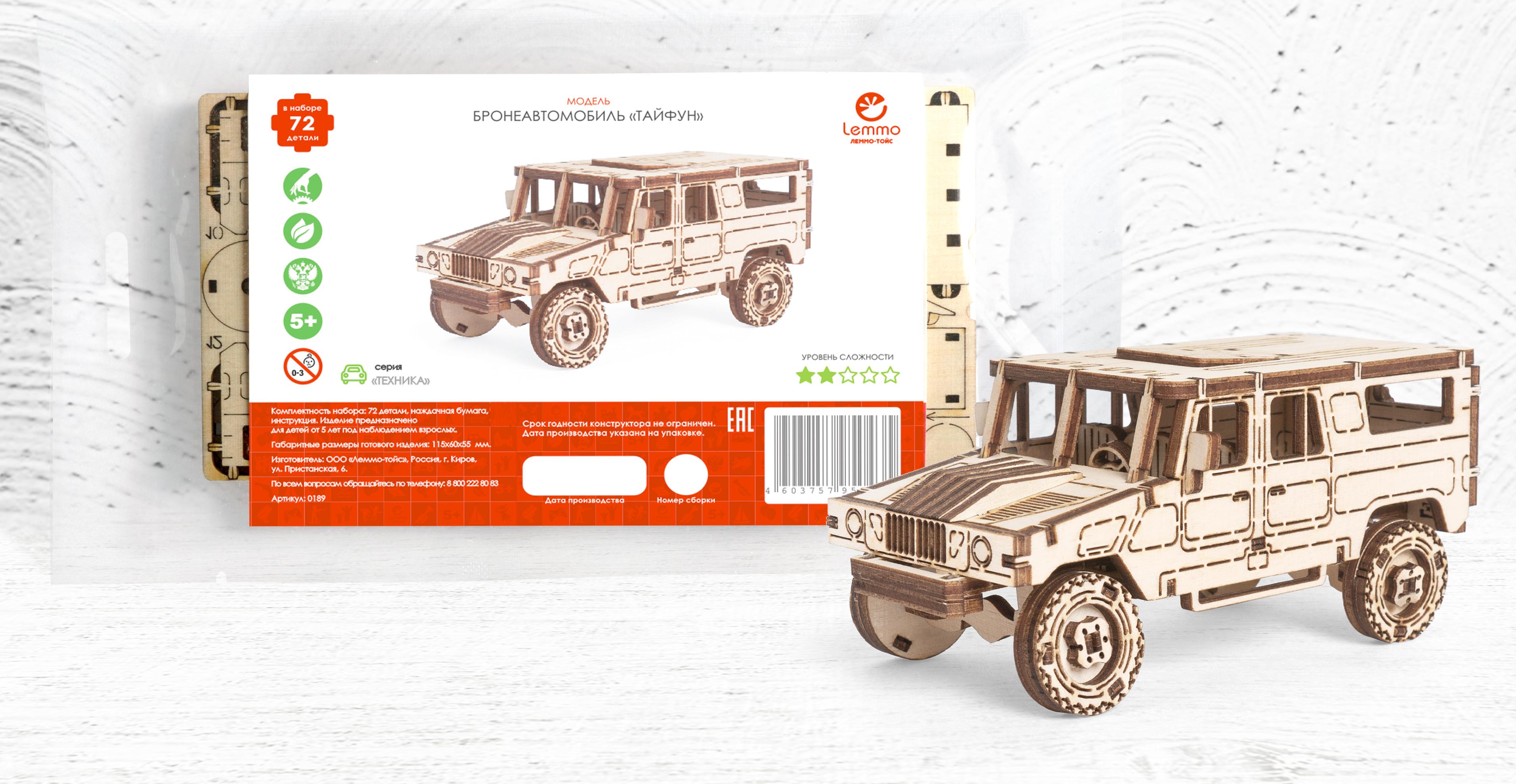 Деревянный конструктор и сборная модель из дерева Автомобиль, Внедорожник, Бронеавтомобиль "Тайфун" от фабрики деревянной игрушки "Леммо" для детей и взрослых.