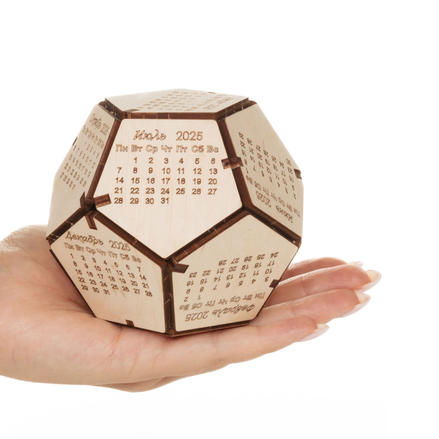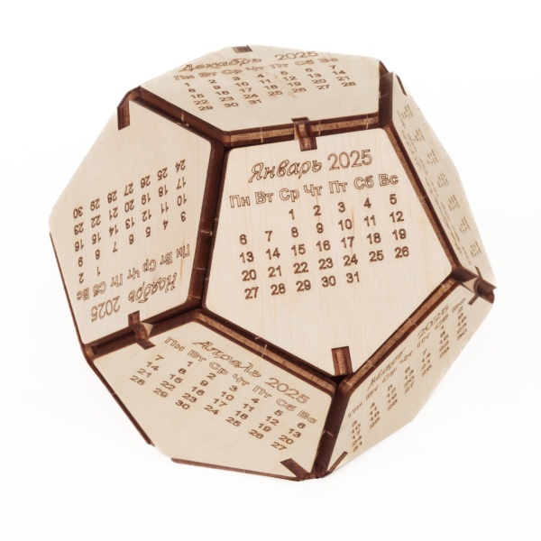 Деревянный календарь "Додекаэдр". Сама форма додекаэдр кажется, что была придумана для размещения календаря с месяцами и датами, 12 граней и 12 месяцев.