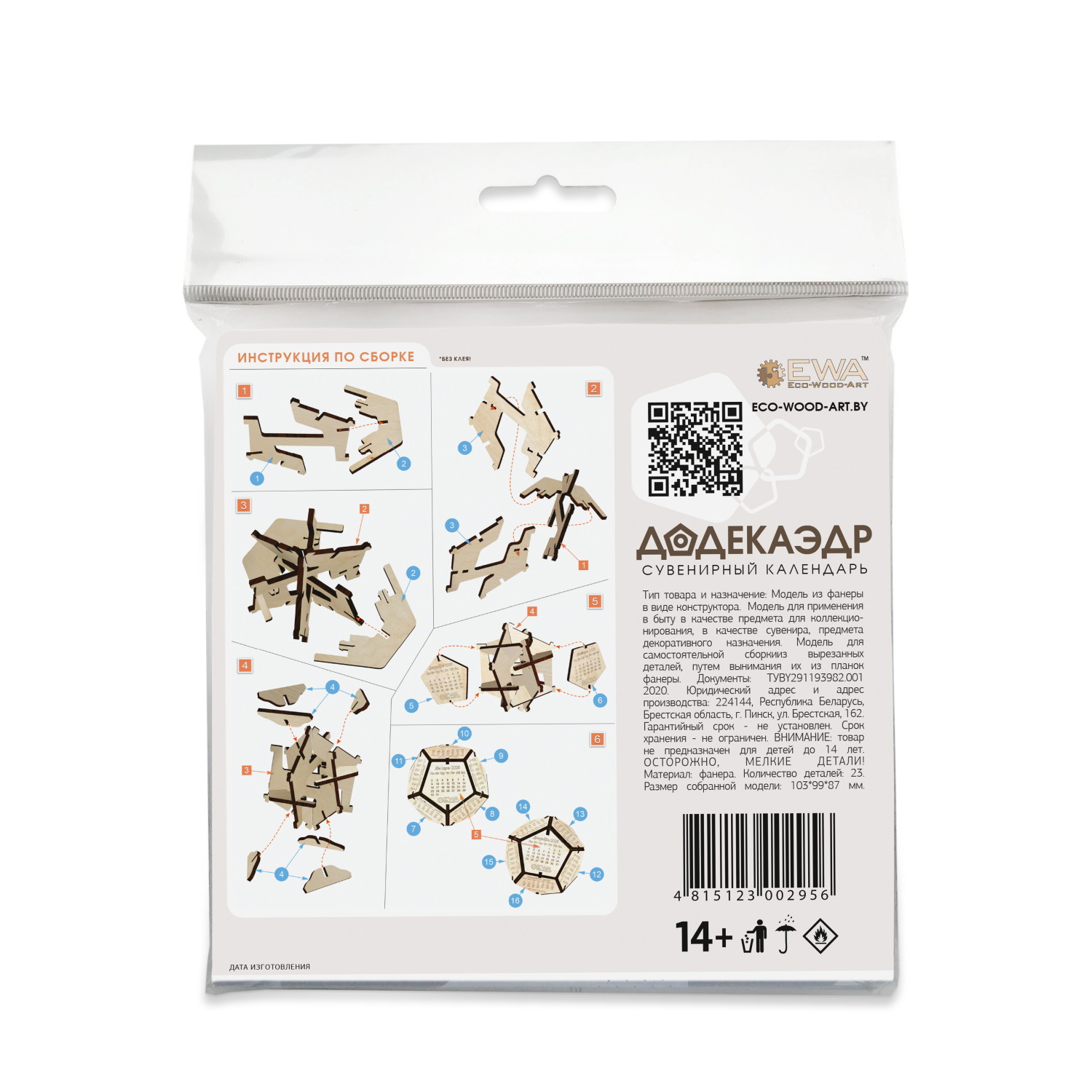 Деревянный конструктор, сувенир EWA Календарь Додекаэдр