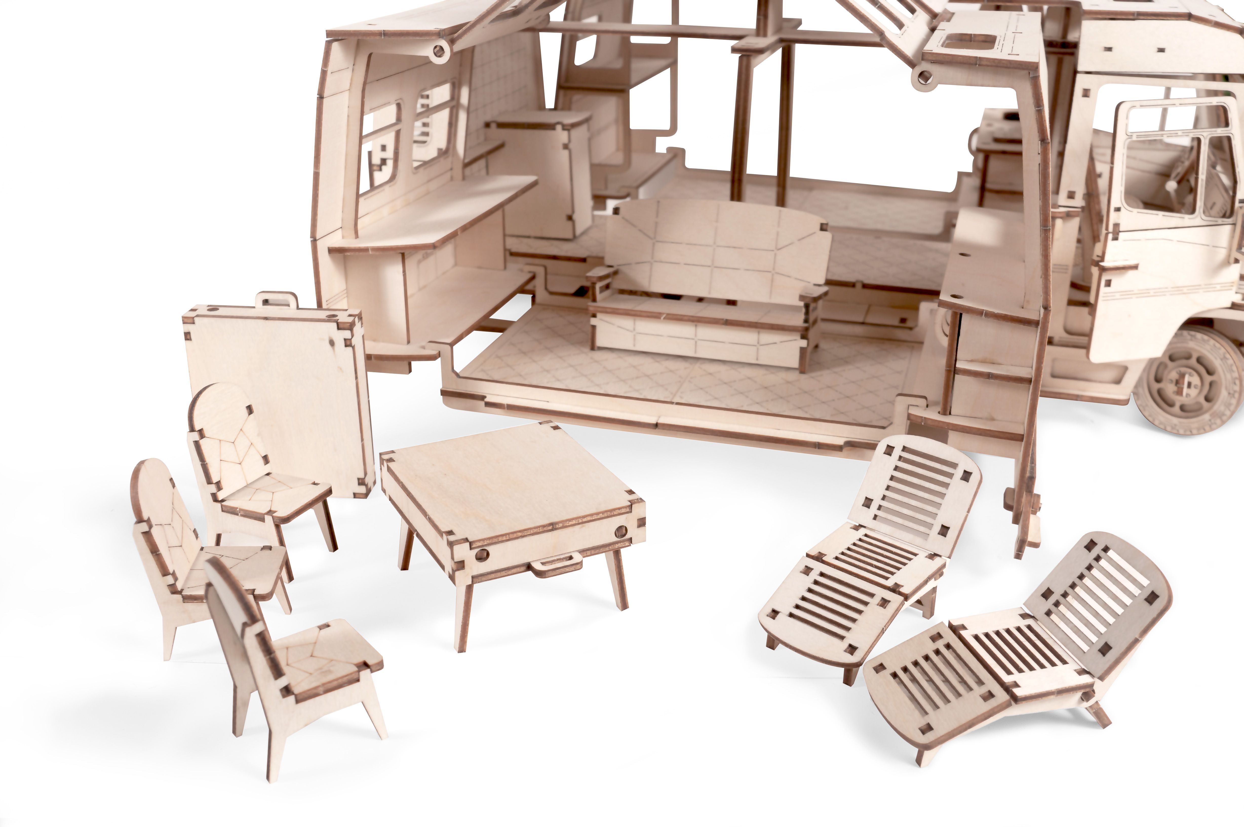 Великолепная сборная модель и конструктор из дерева от компании Леммо (Lemmo). Кукольный Дом на колесах (Пикник) для ваших героев.