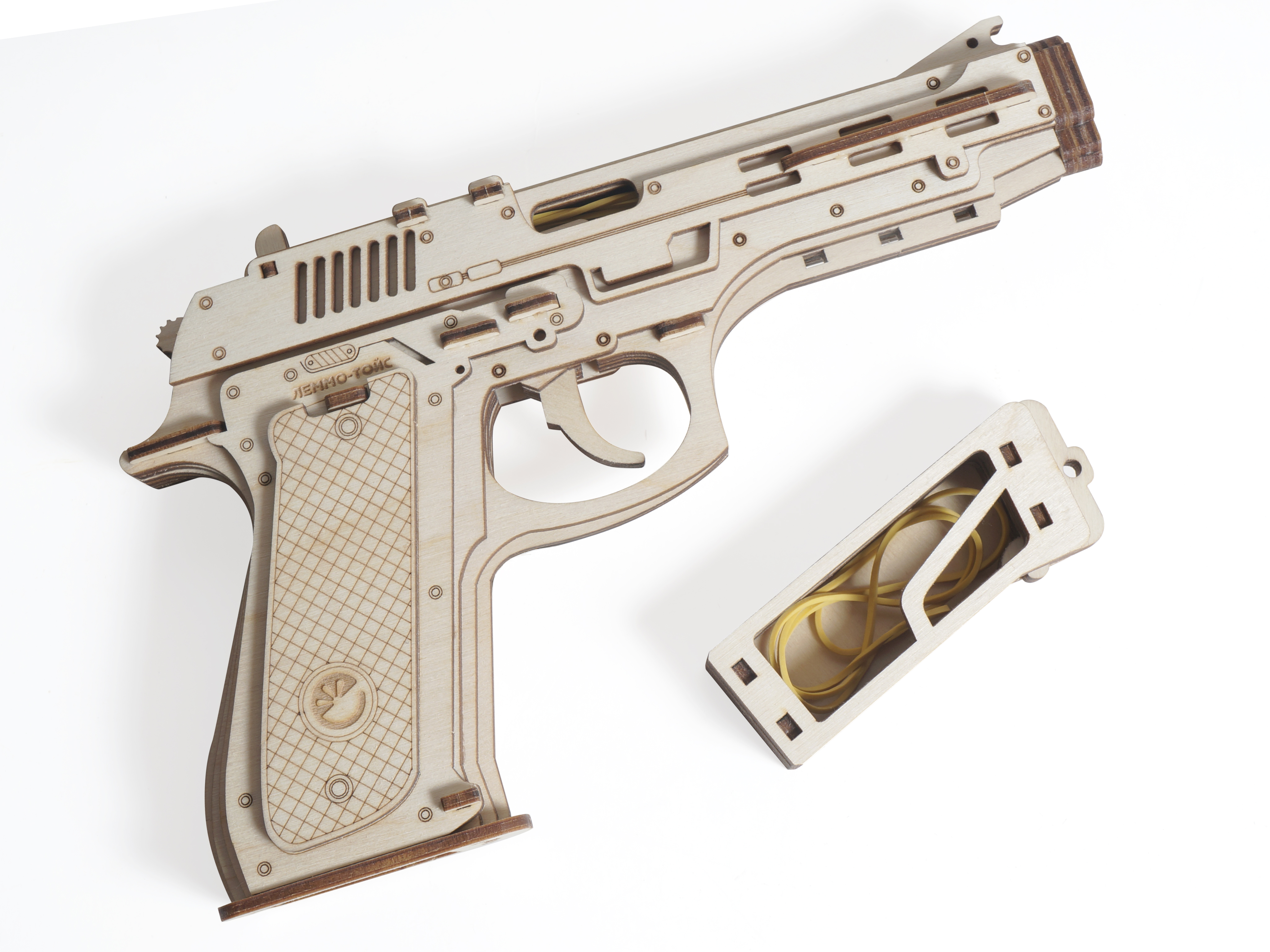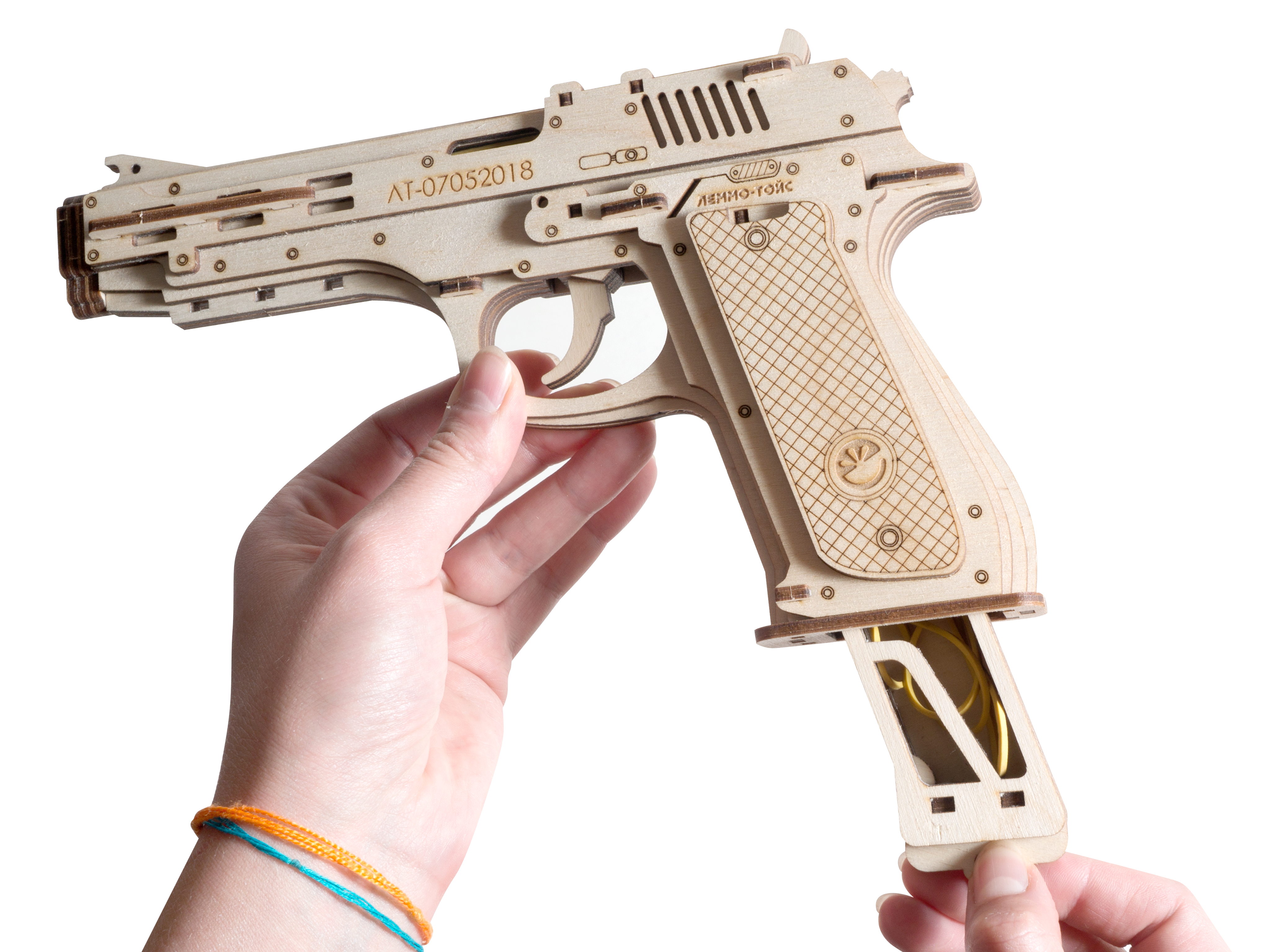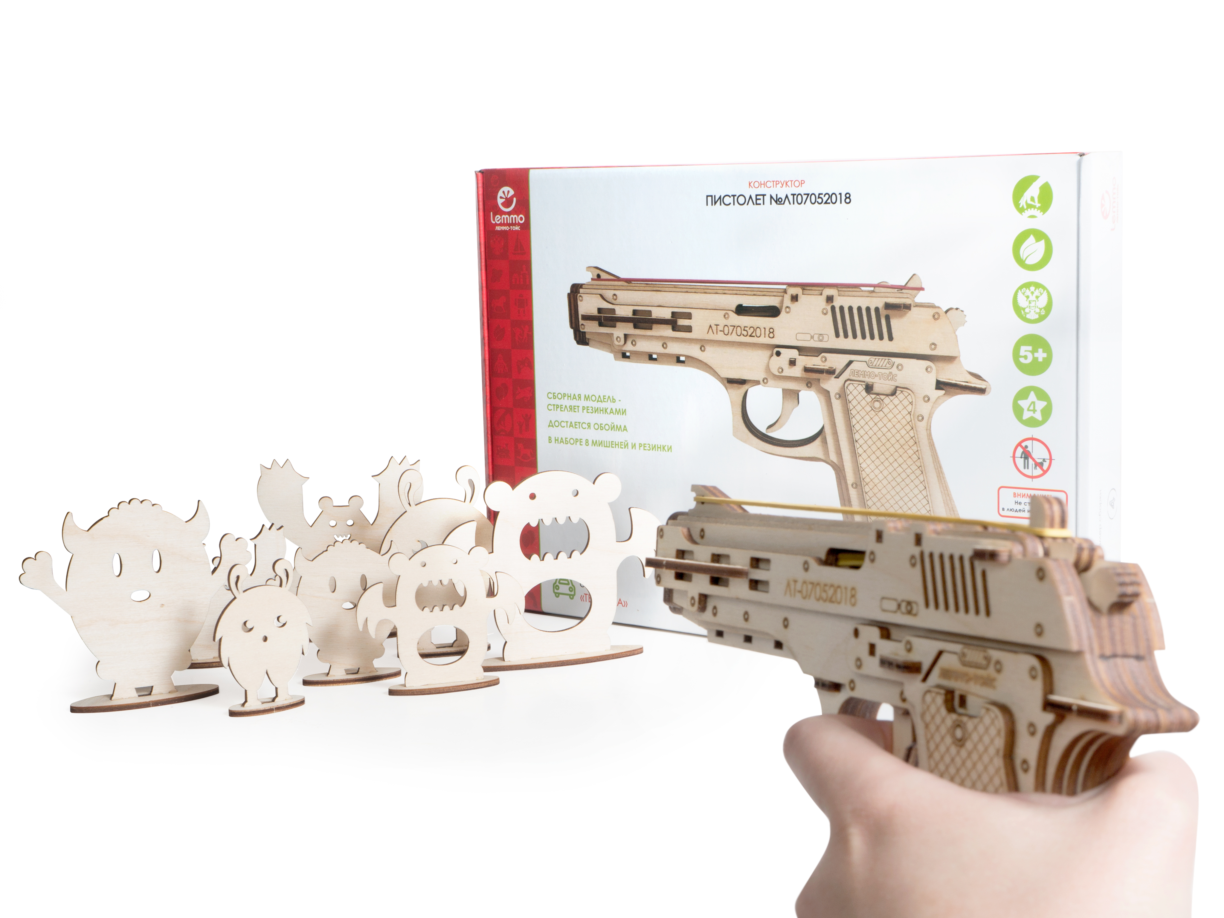 Представьте только, как будет гордиться ваш ребенок после того, как собственноручно соберёт модель настоящего пистолета! Наборы от компании "Леммо Тойс" производятся из экологически чистой натуральной древесины, без использования клея и вредных для здоровья примесей. Наши изделия не содержат вредные химические вещества или красители, поэтому даже самые маленькие дети могут играть в них (мы, тем не менее, рекомендуем присматривать за детьми во время игры). Выберите мишень (только не в людей!), прицельтесь и стреляйте!