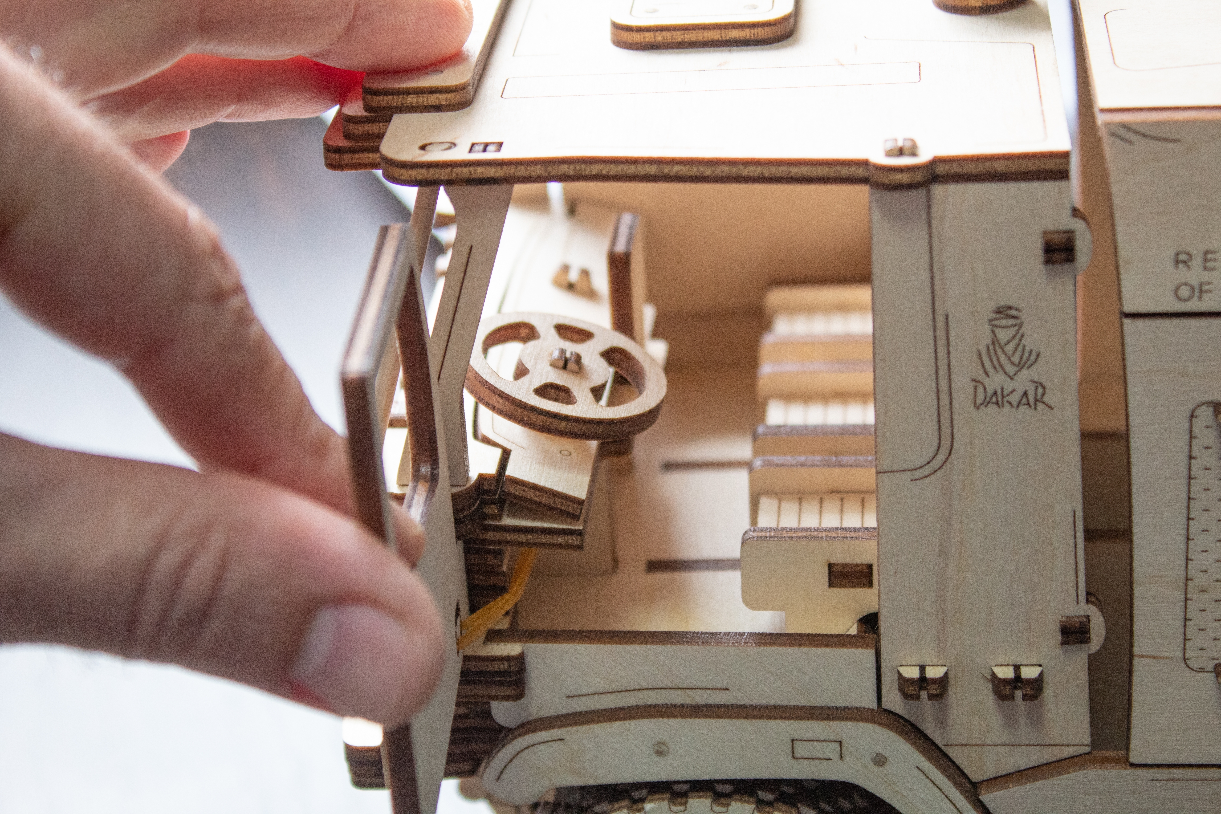 Модель предназначена для самостоятельной сборки. Экологически чистые материалы, качественная прорисовка элементов, эффектное сходство с оригиналом, наличие мощного резиномотора, который приводит в движение автомобиль, устройство заводки-запуска-остановки, поворотные колеса с механизмом управления и открывающиеся двери кабины доставят удовольствие от сборки и радость от использования как детям, так и взрослым. Отличный конструктор, замечательная игрушка, идеальный подарок и оригинальный предмет коллекционирования для дома и офиса!