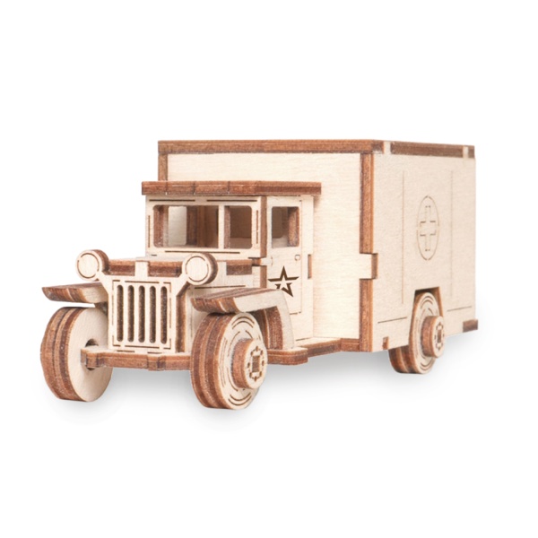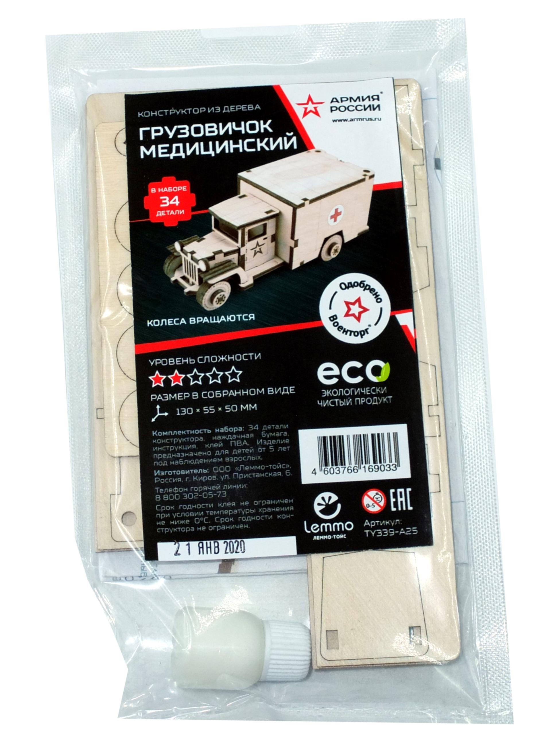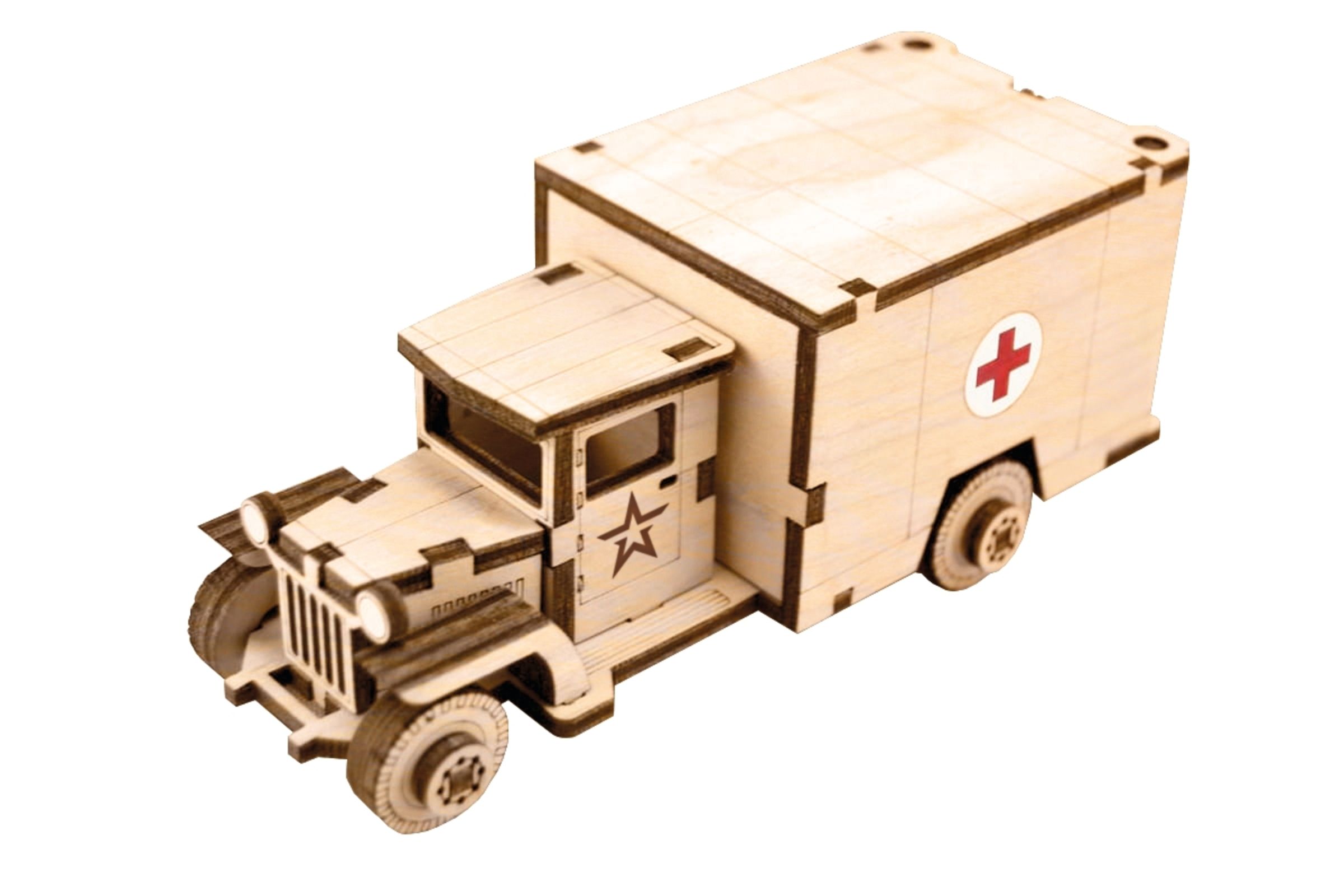 Набор Советский грузовик ЗИС-5М Медицинский подходит для ребенка от 5 лет. У собранной модели вращаются колеса, открывается задняя дверь.