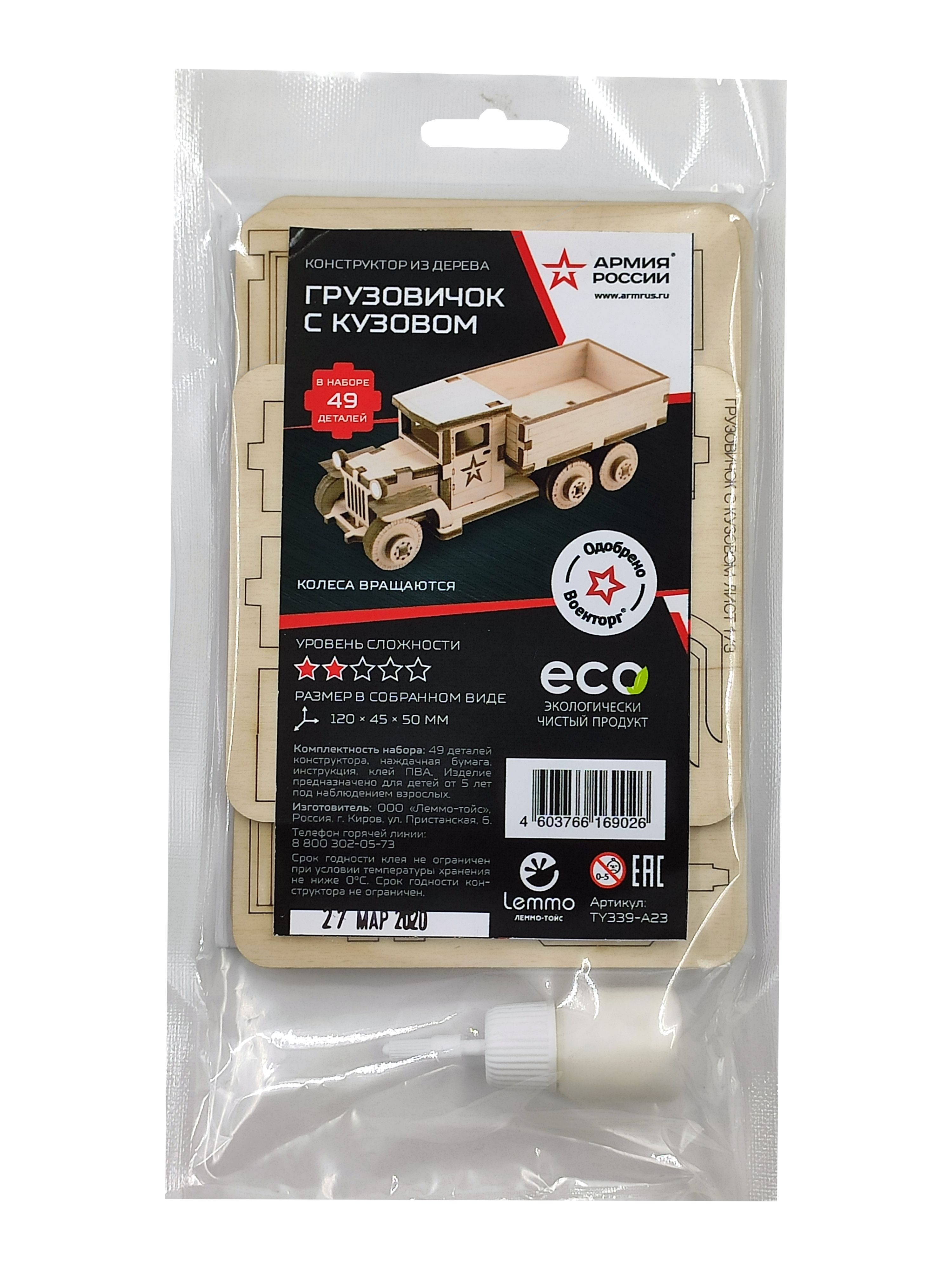 Конструктор деревянный Армия России Грузовик с кузовом