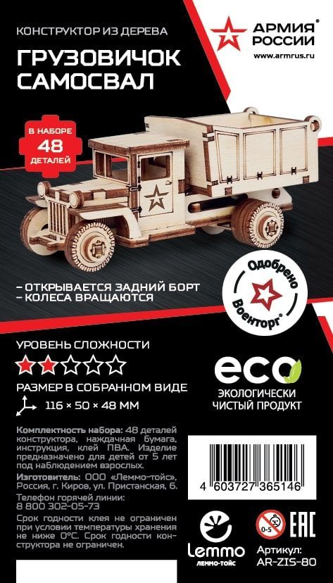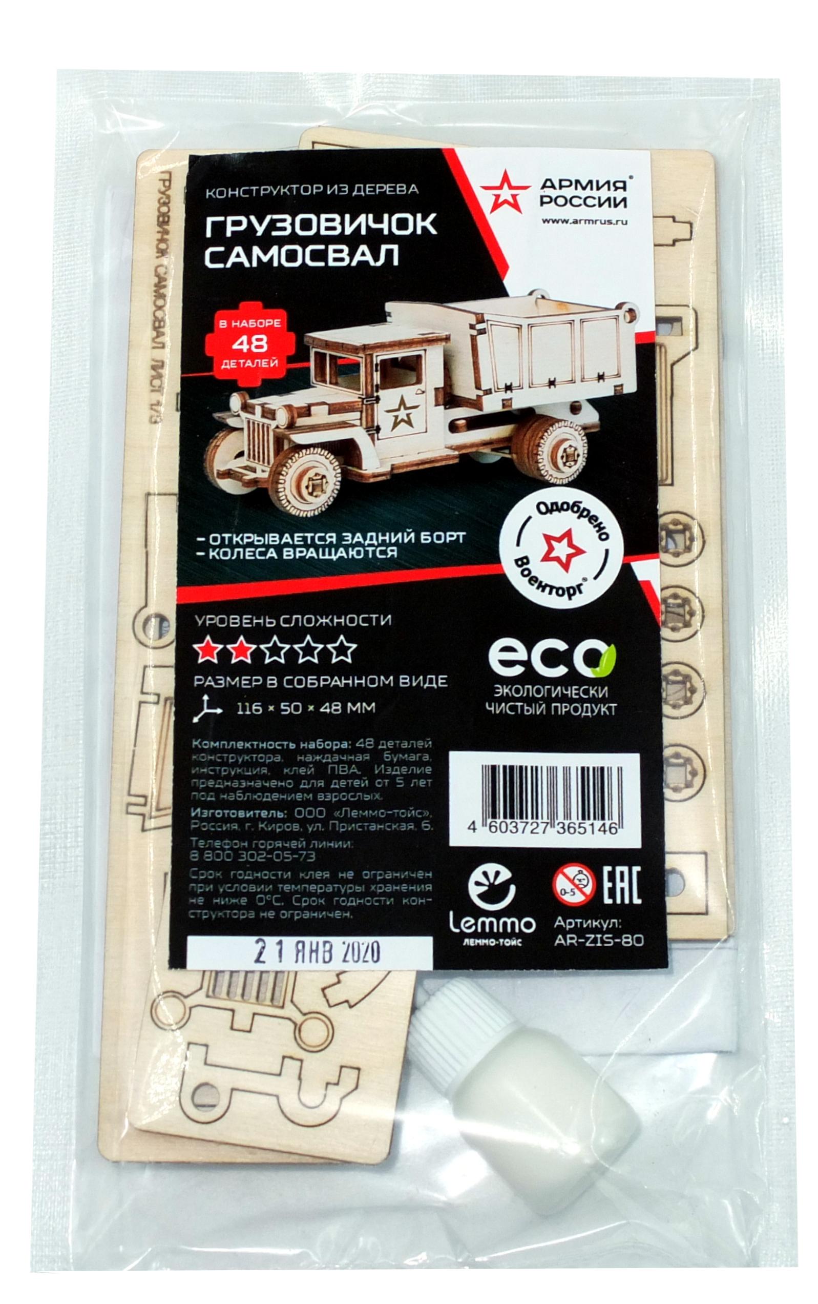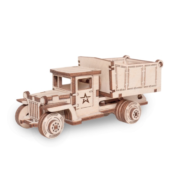 Набор Советский грузовик ЗИС-5ВБ с кузовом подходит для ребенка от 5 лет. У собранной модели вращаются колеса.