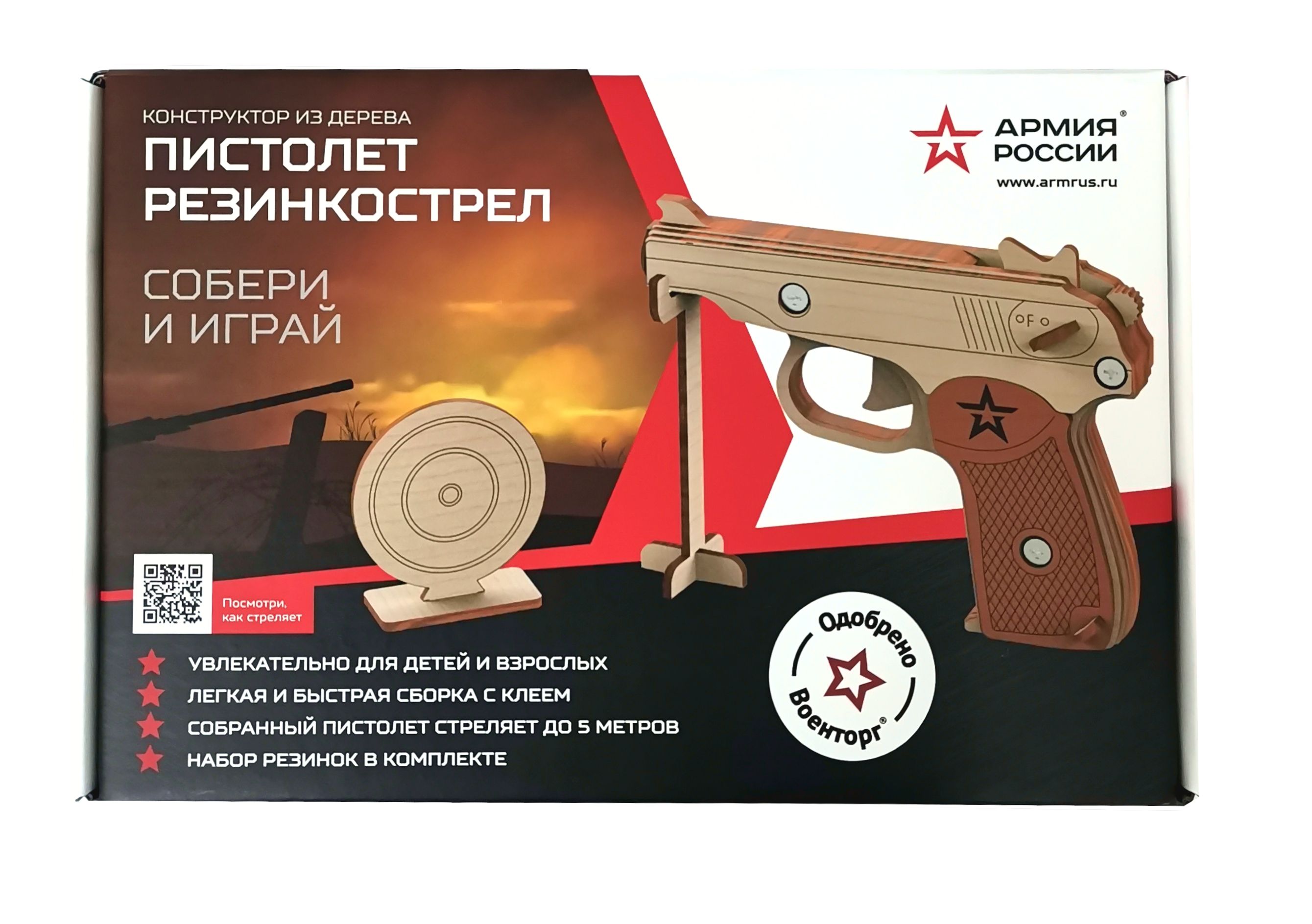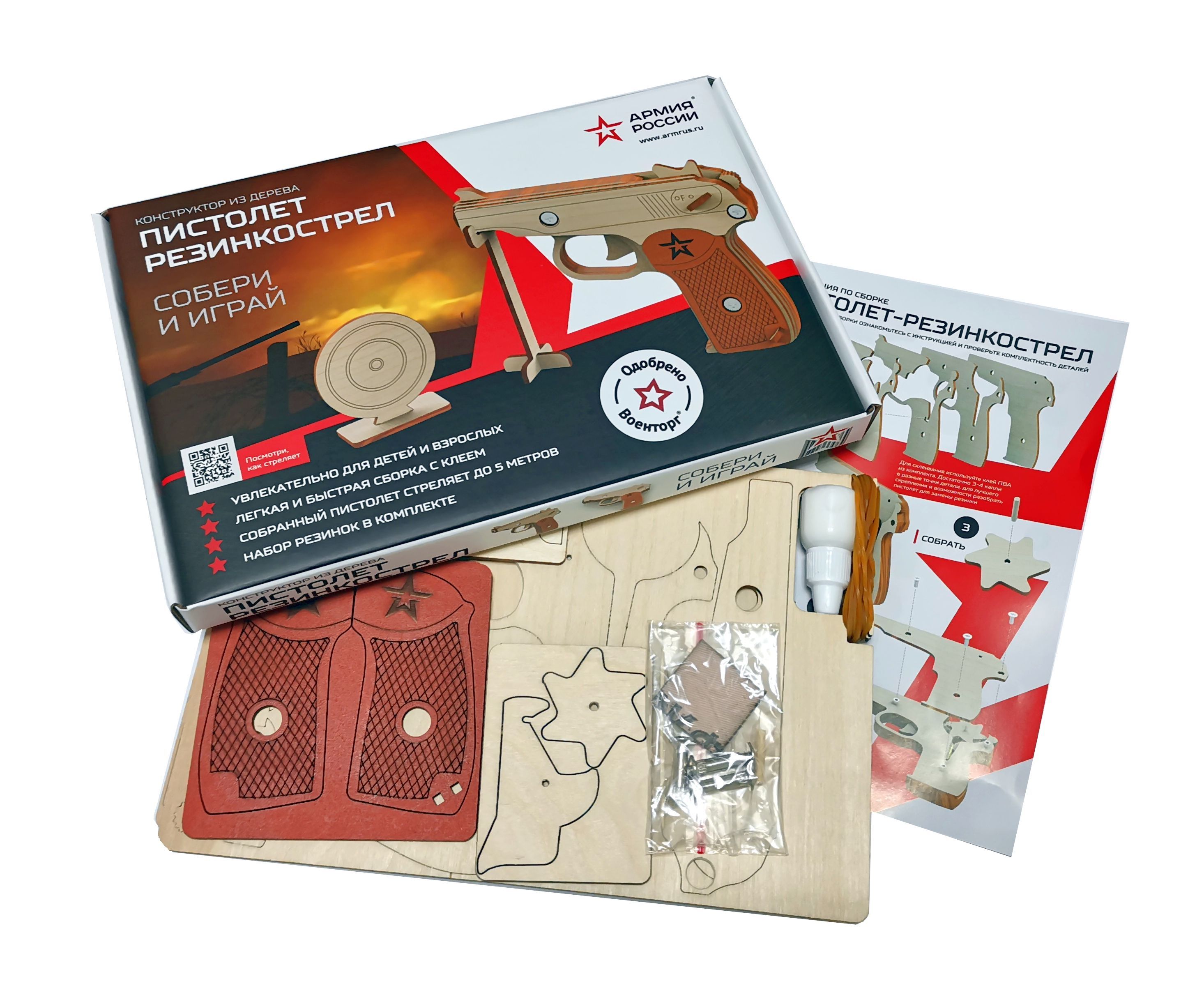 Конструктор из дерева "Армия России" Резинкострел Пистолет
