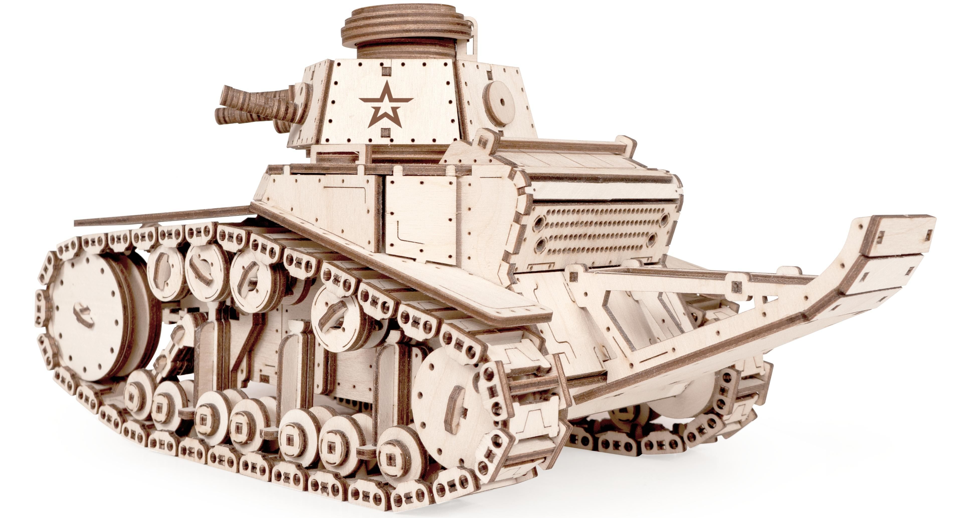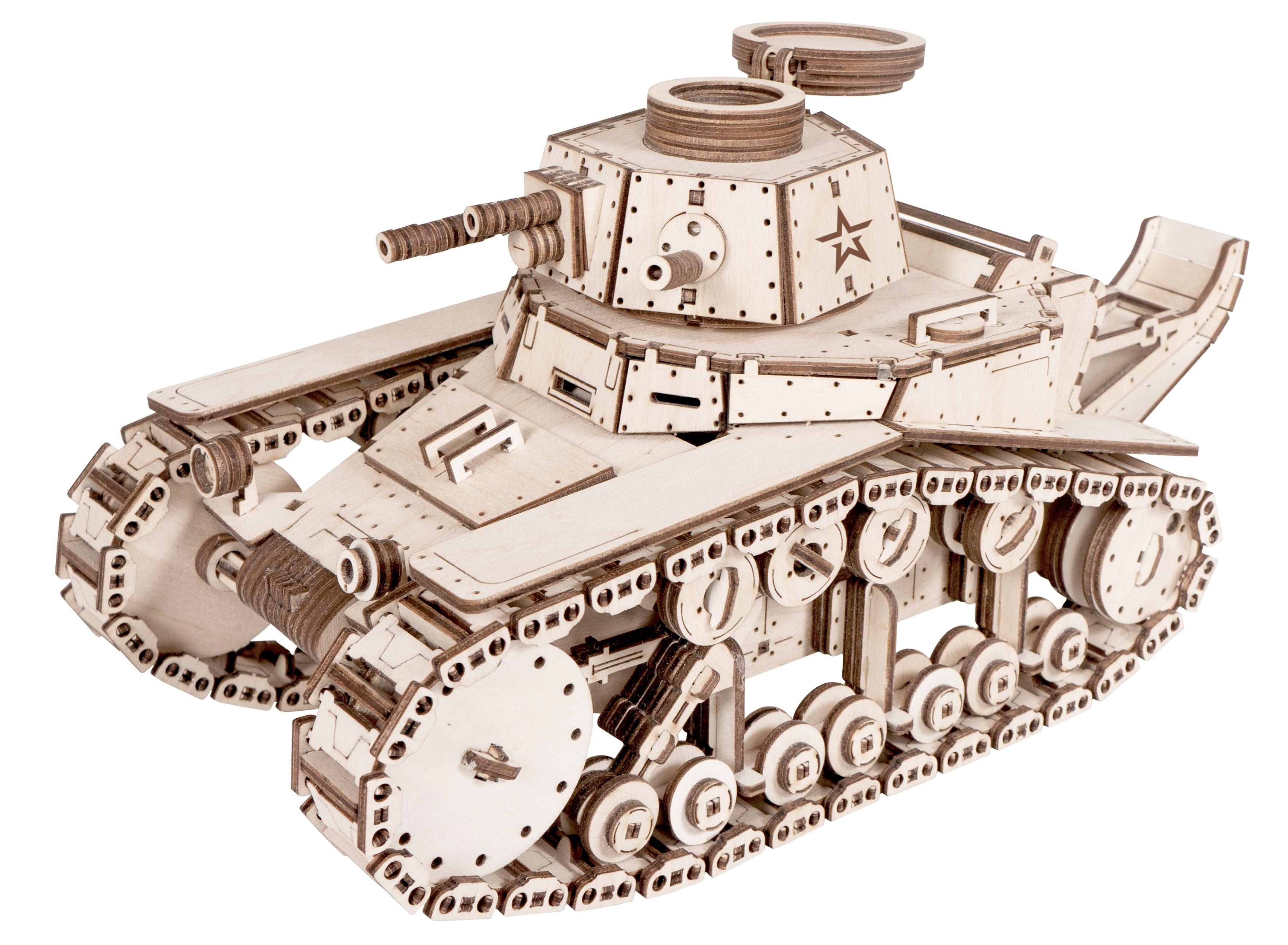 Танк деревянный с подвижным деталями МС-1 от "Армия России" - легкий советский пехотный танк составлял основу советского танкового парка, он не использовался в Великой Отечественной Войне и позже был заменен другим танком, но зато это одна из самых популярных моделей у наших покупателей.