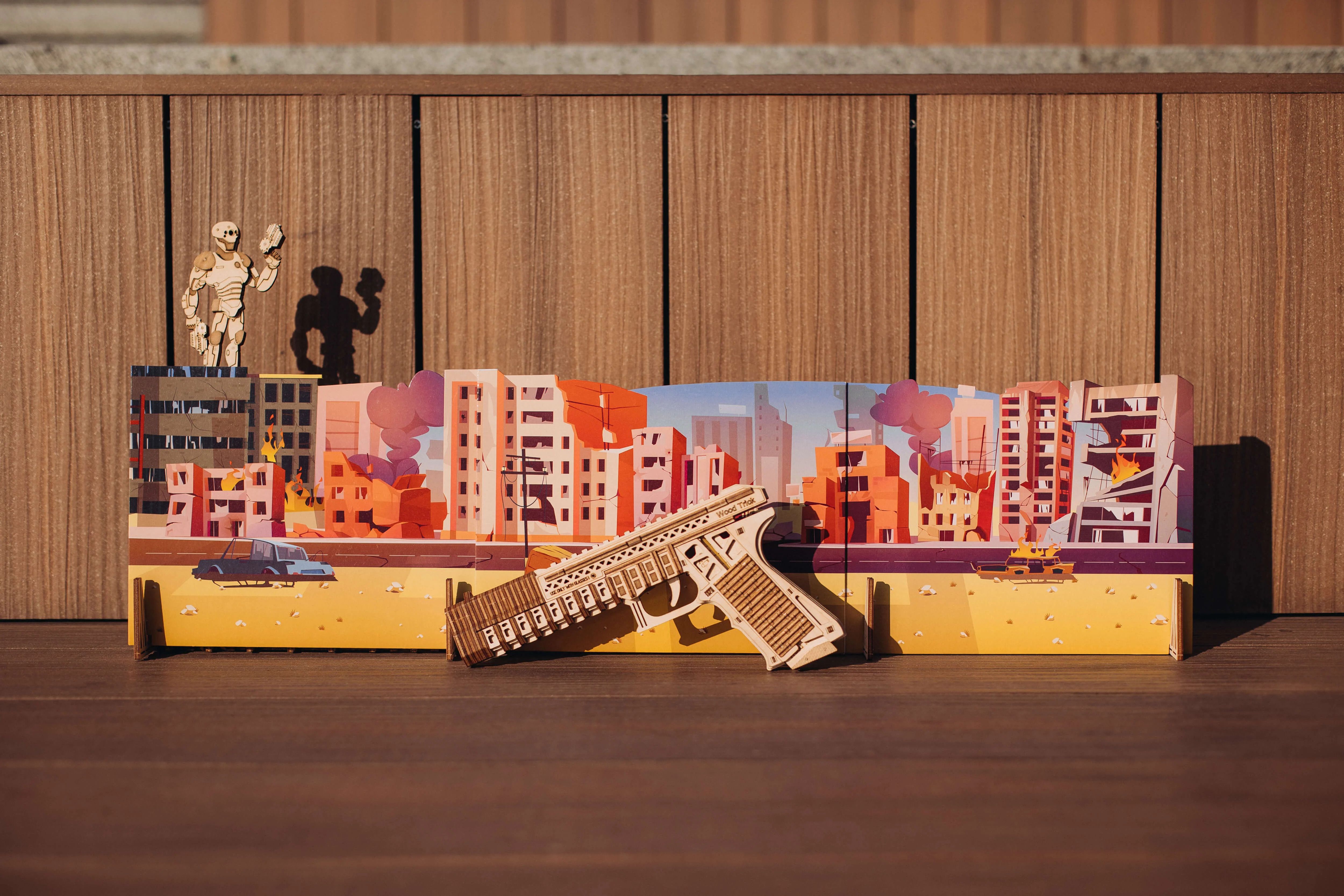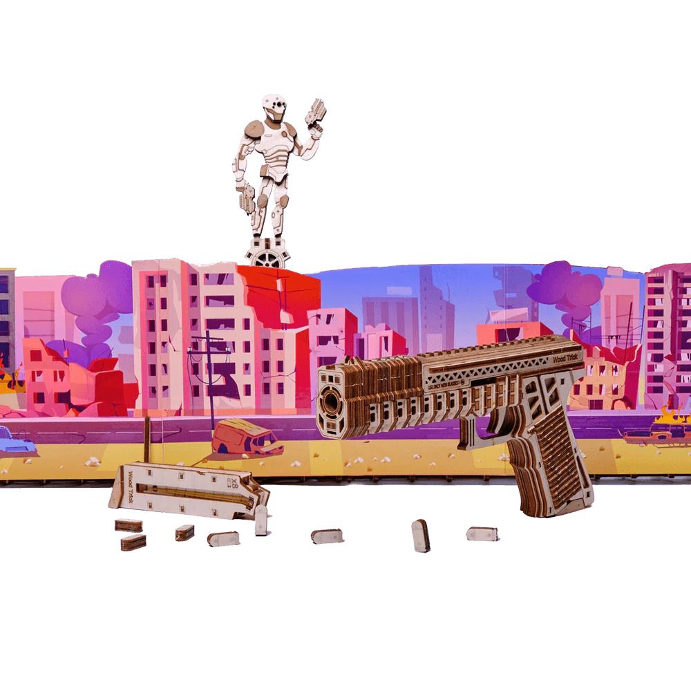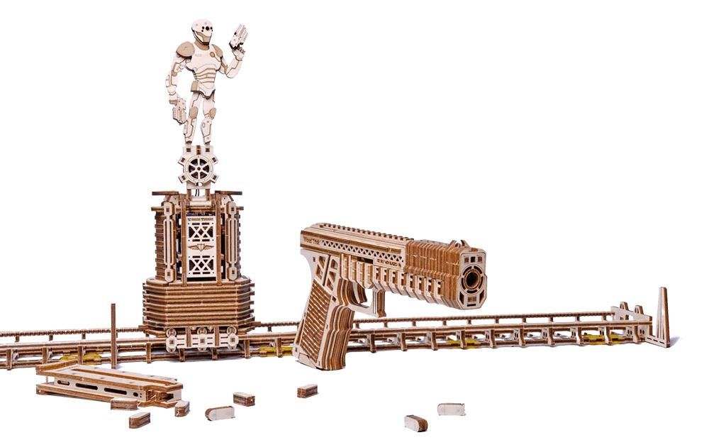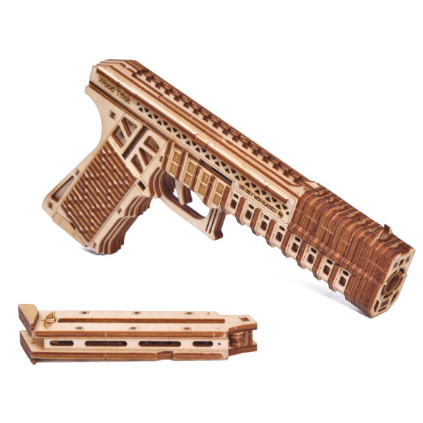 Механическая деревянная сборная модель Wood Trick Пистолет и ТИР Электронный