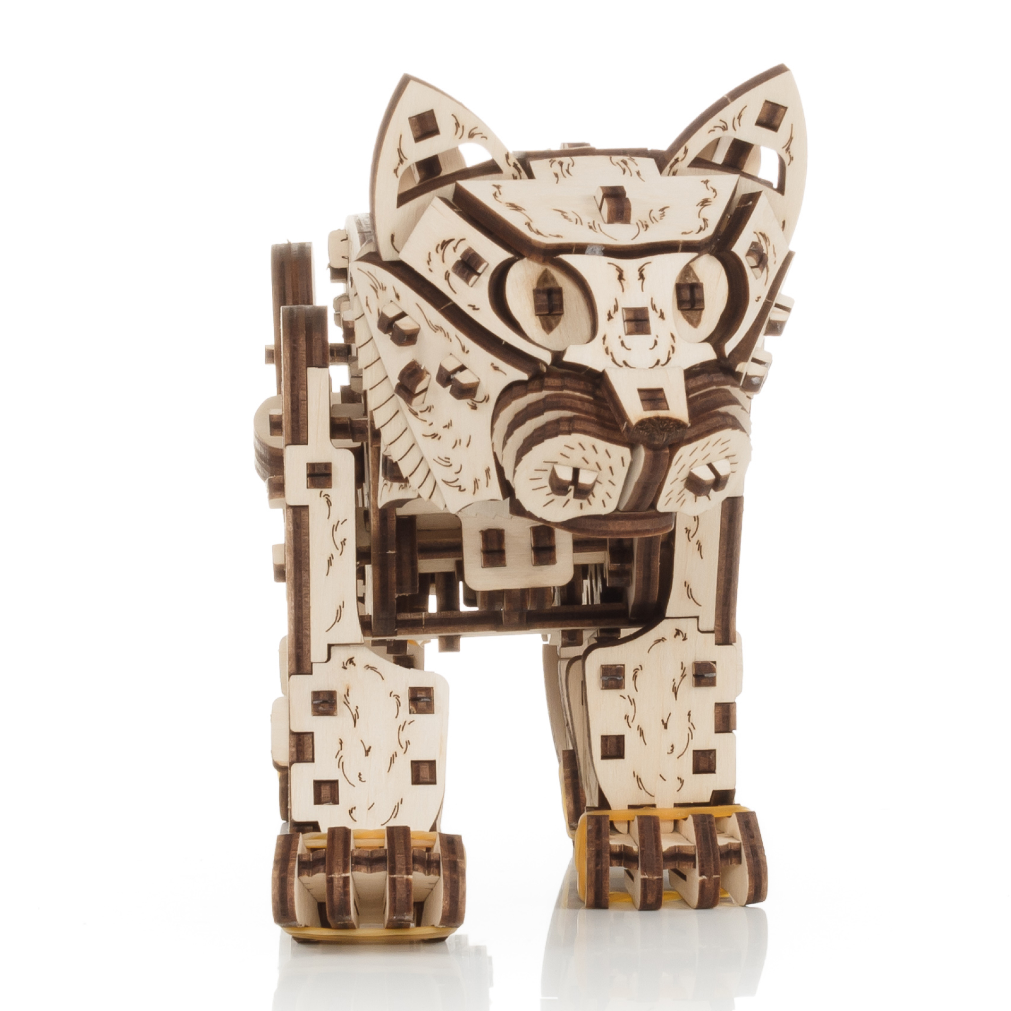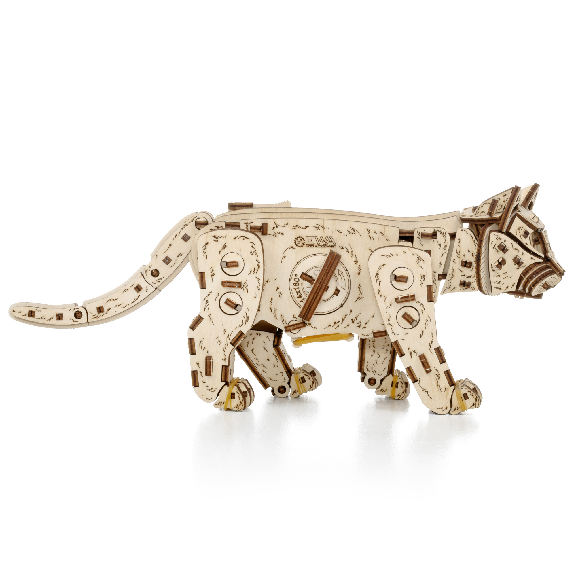 Деревянный механический конструктор в виде кота -альтернатива заведению домашнего питомца (никаких забот, а ребенок счастлив).