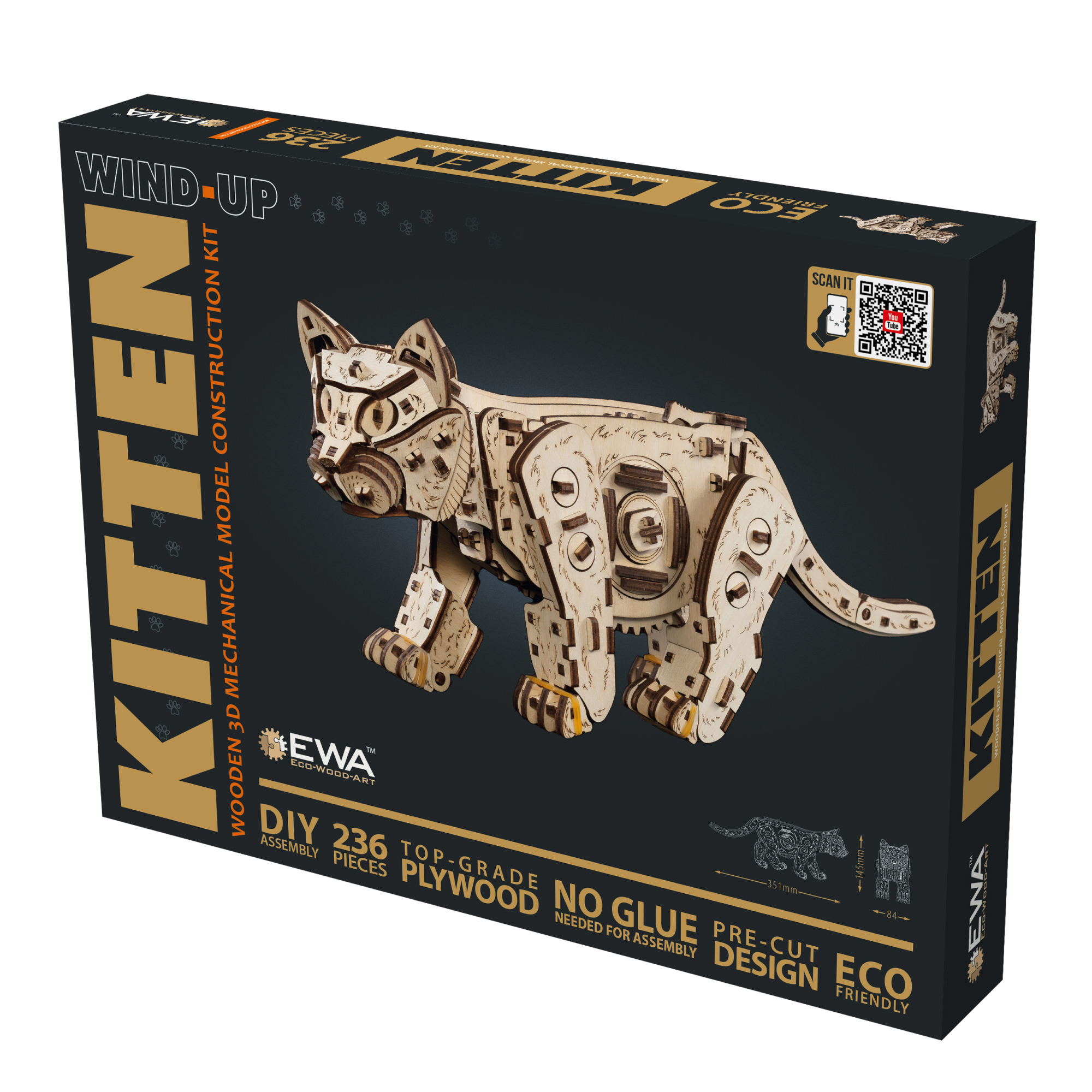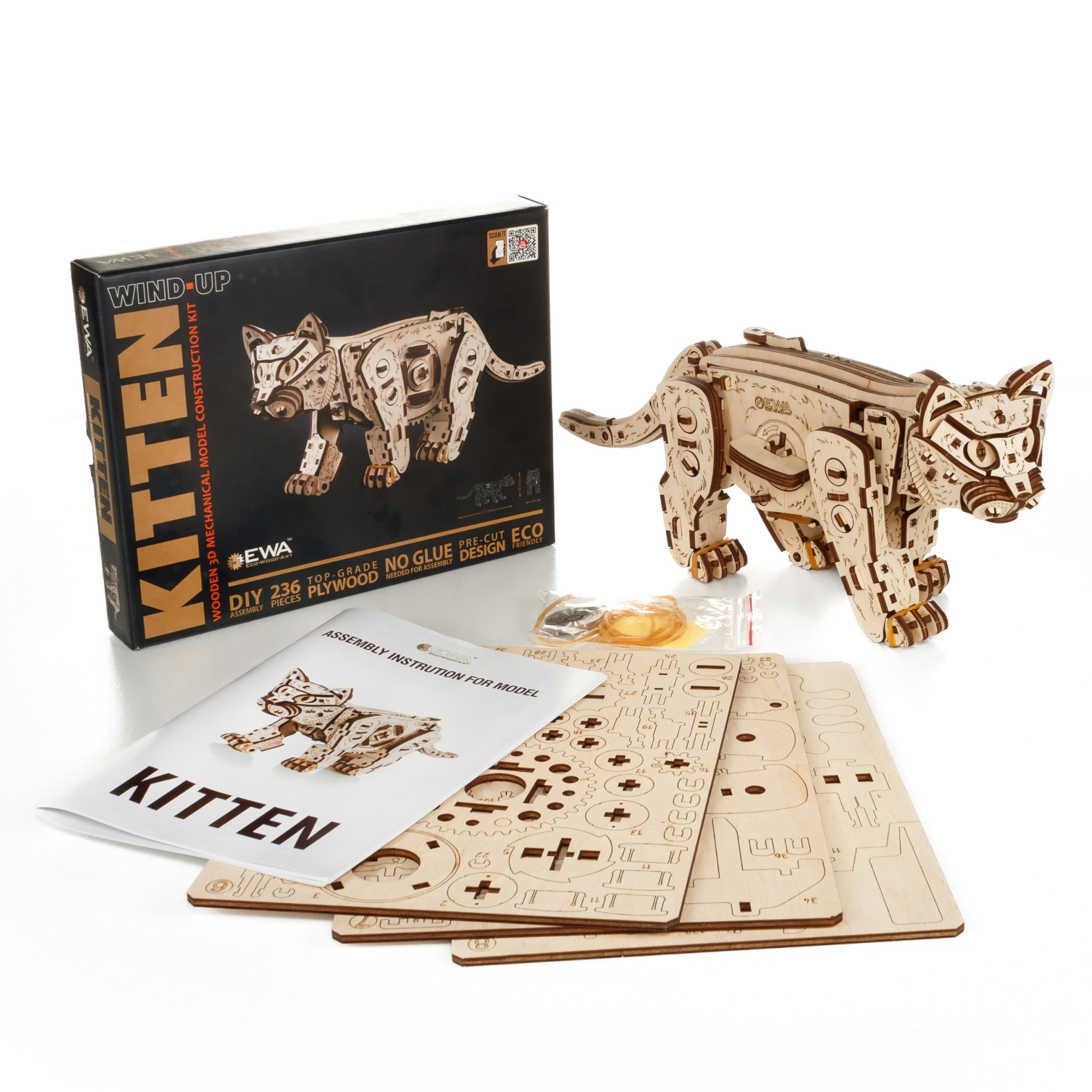 После сборки конструктора, заведите его, и он начнет шагать, словно настоящий живой котенок!