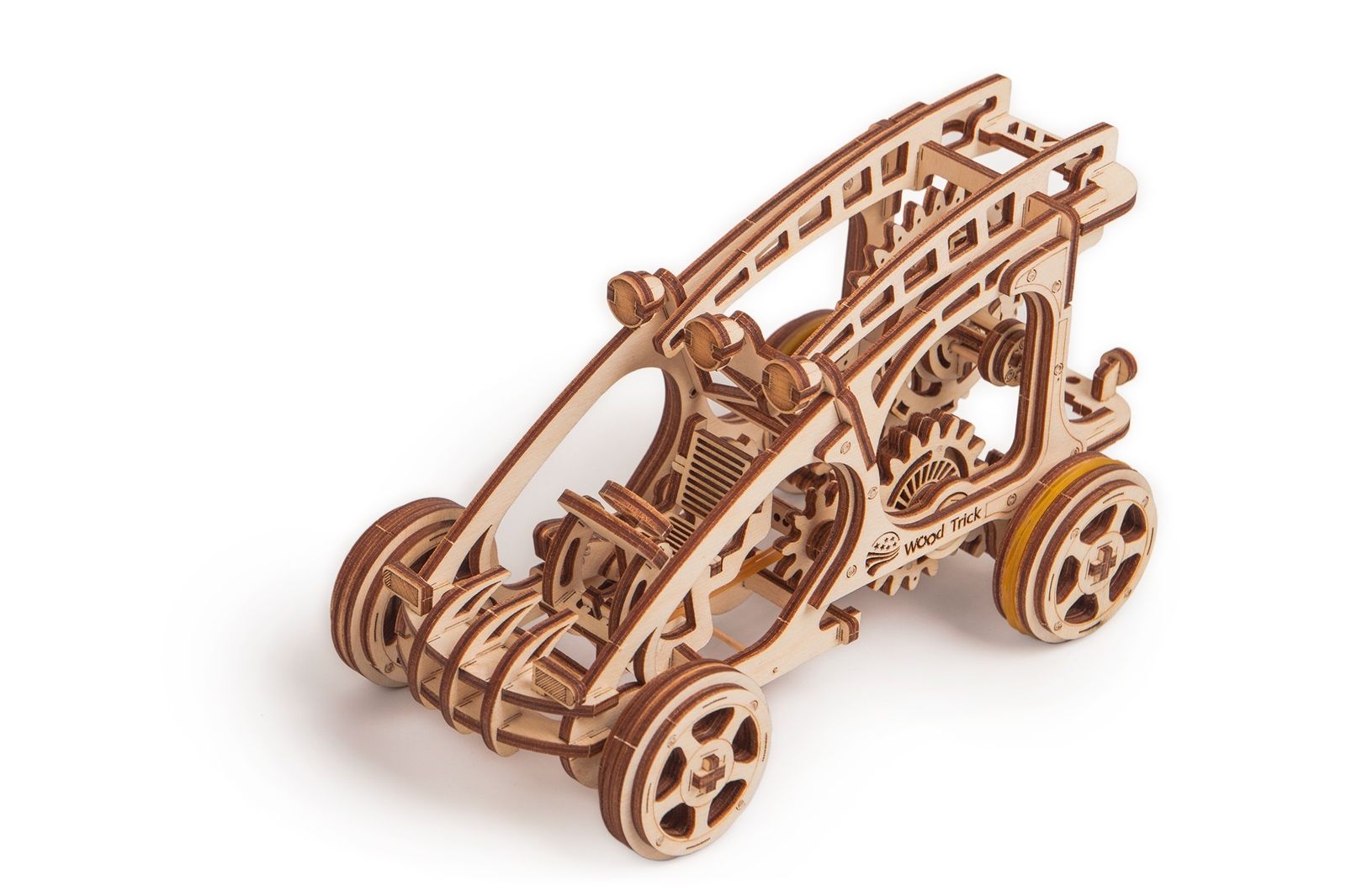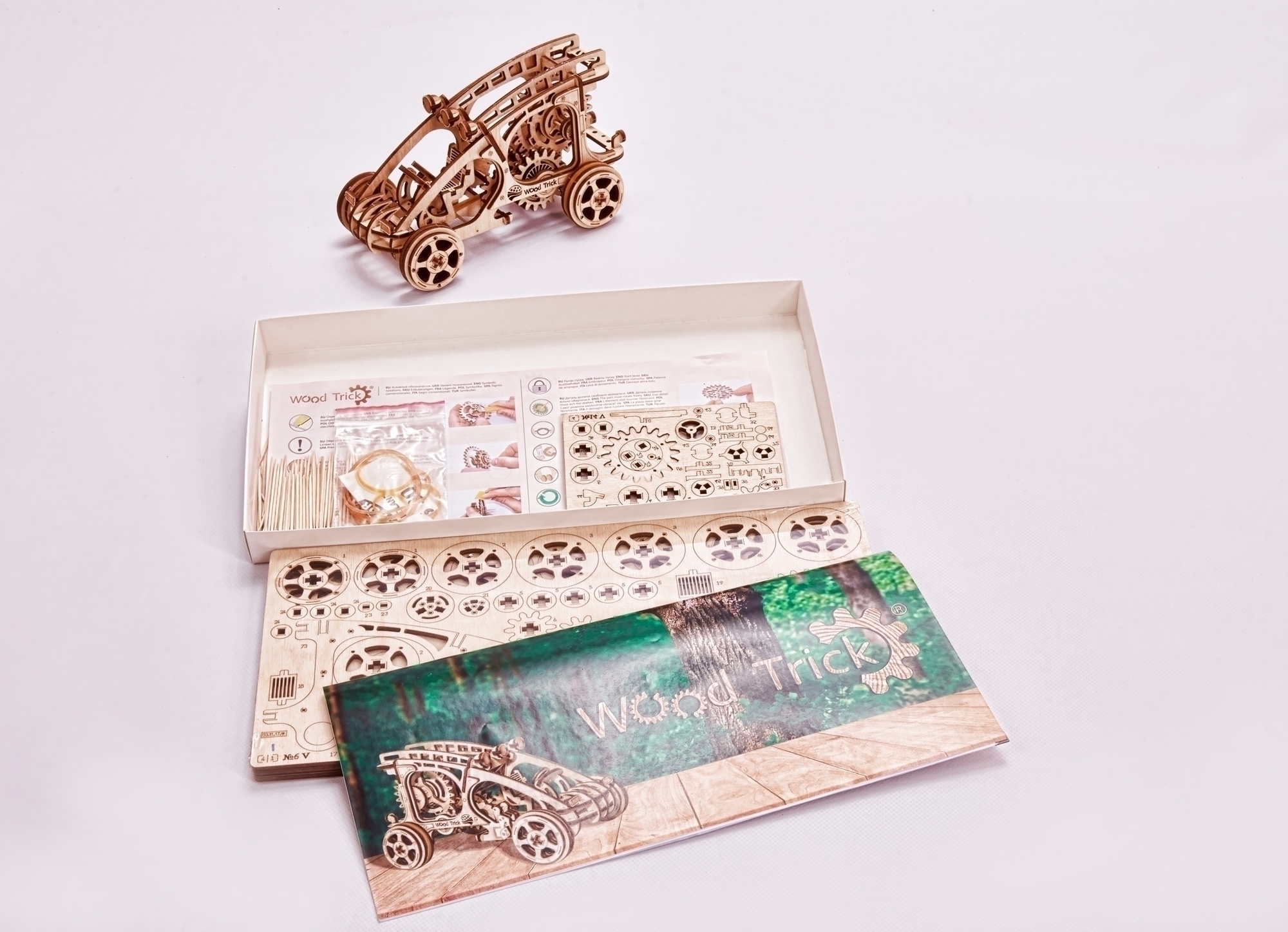Наборы от компании Wood Trick производятся из экологически чистой натуральной древесины, без использования клея и вредных для здоровья примесей. Наши изделия не содержат вредные химические вещества или красители, поэтому даже самые маленькие дети могут играть в них (мы, тем не менее, рекомендуем присматривать за детьми во время игры). В каждом наборе присутствует подробная инструкция по сборке и красивая иллюстрация готового изделия. Маршрут проложен. Ключ на старт. Готовы показать на что вы способны?