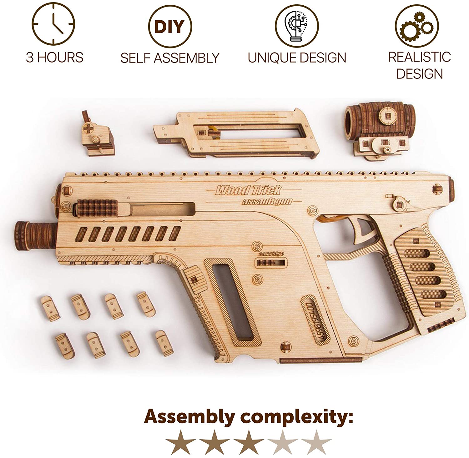 Штурмовая винтовка быстро заряжается и может без остановки стрелять, пока не опустеет обойма. Конструкторы Wood Trick помогают детям развивать фантазию не только во время игры, но и в процессе сборки. Ваш ребенок почувствует себя настоящим архитектором и проектировщиком. Легкая и понятная ребенку инструкция поможет ему собрать конструктор самостоятельно и несомненно обрести навыки моделирования.