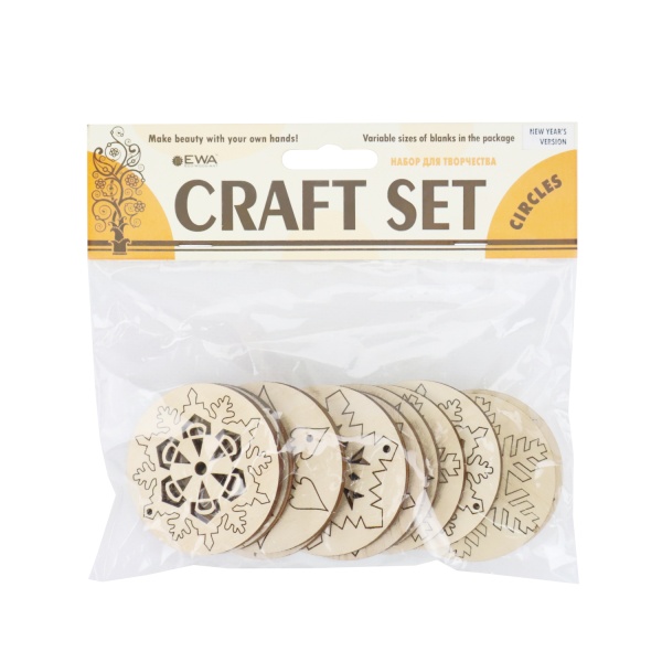 Набор для творчества "Деревянные снежинки". Такой набор можно использовать, как заготовки для поделок, для декорирования, декупажа или же как деревянную елочную игрушку.