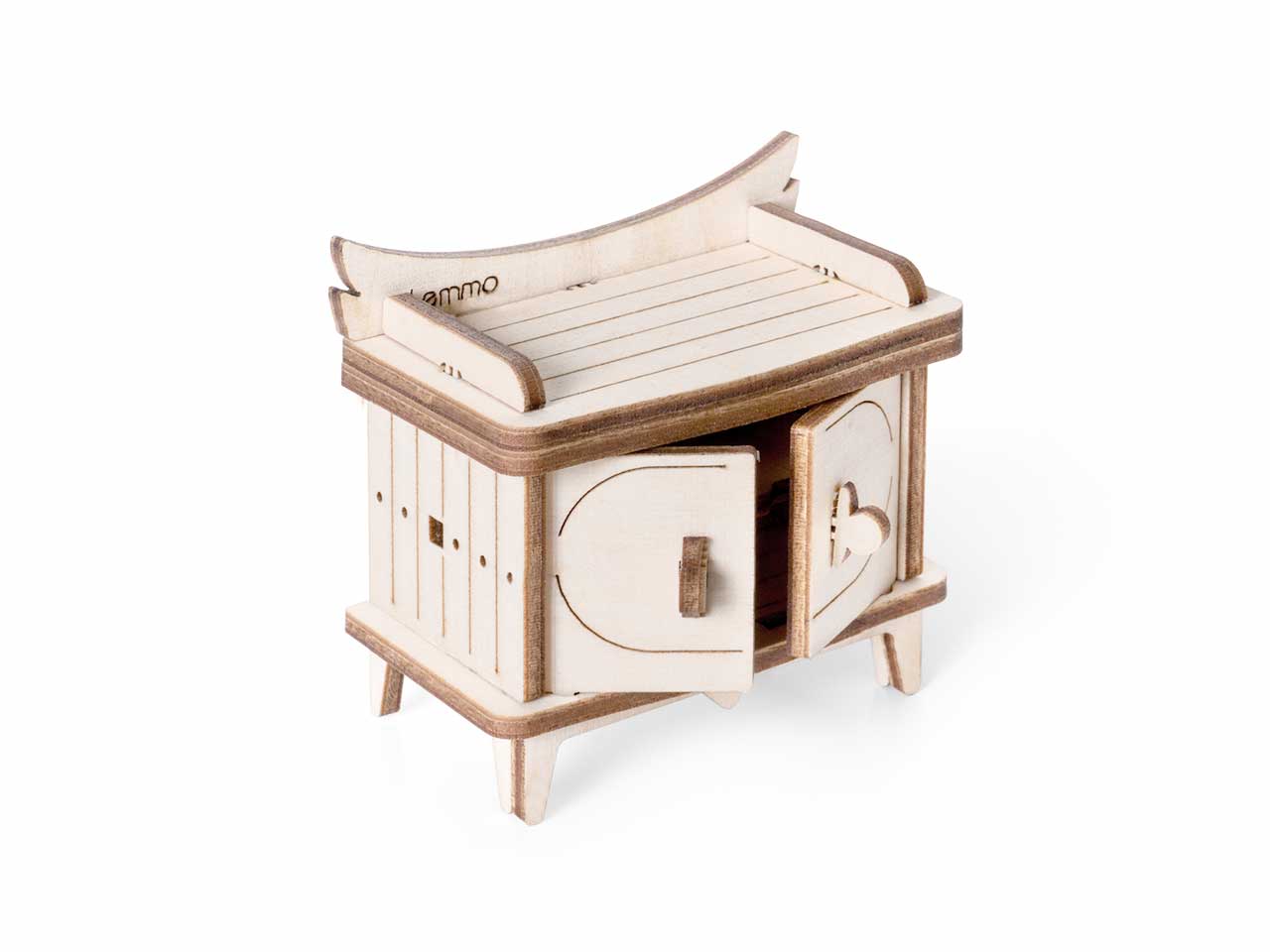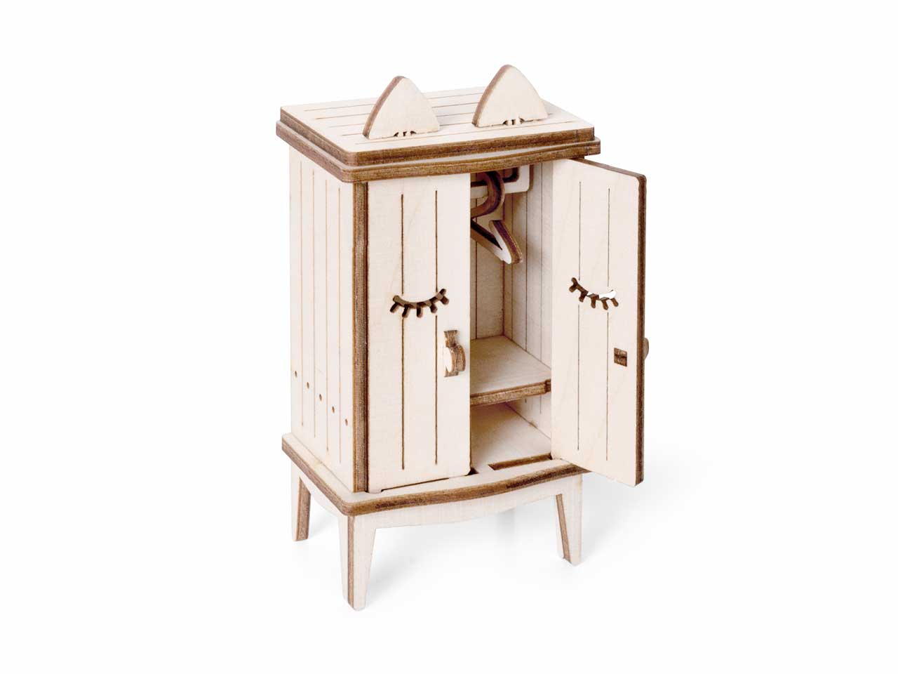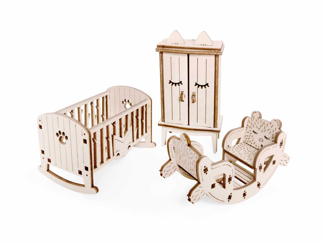 Открываются дверцы шкафчиков, крутятся колёса. Наборы подходят для кукольного дома «Венеция» и «Лофт». При желании мебель можно раскрасить акриловыми красками. Так же можно приобрести наборы мебели «Ванная» и «Бытовая техника».