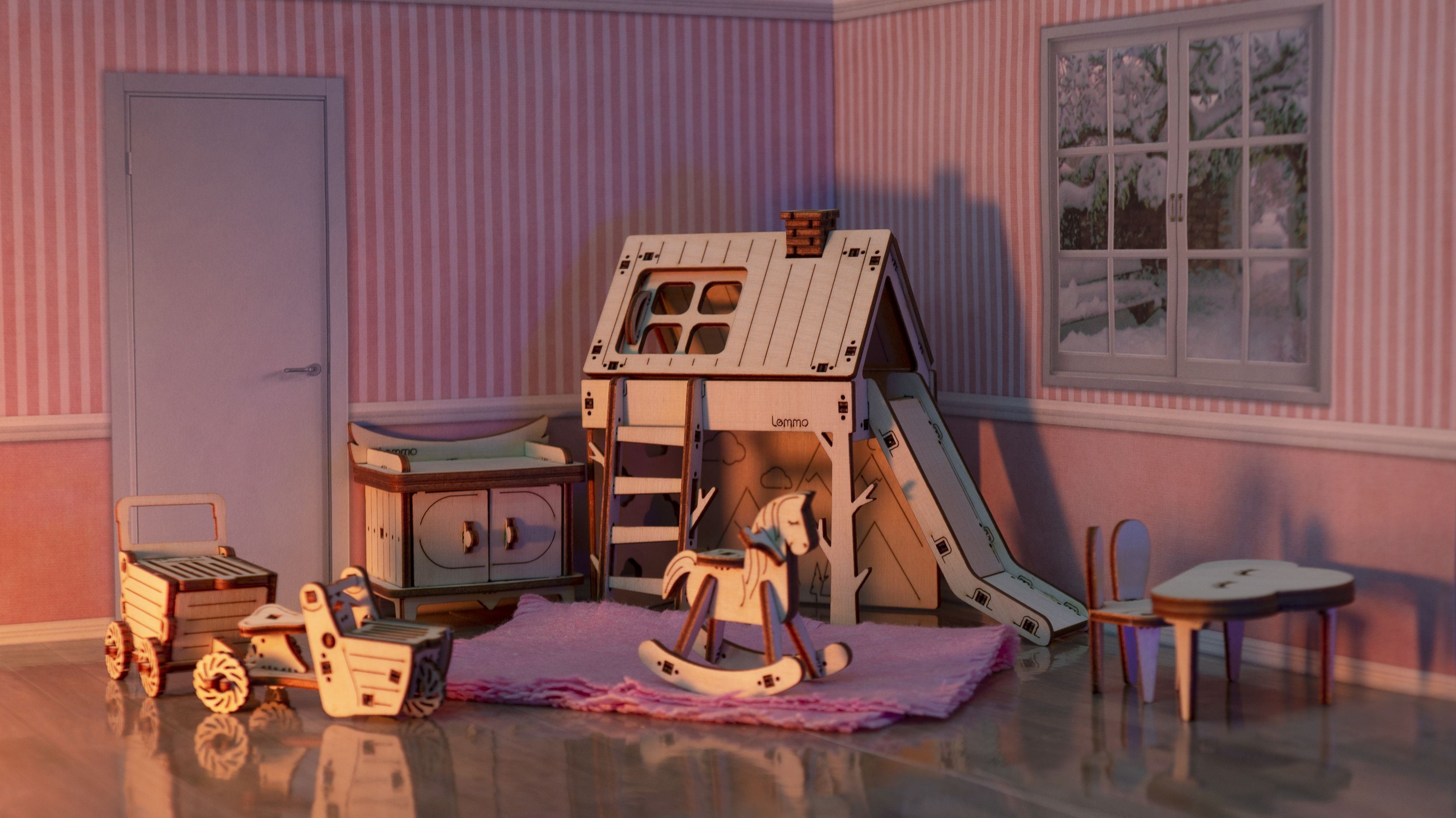 Набор кукольной мебели для кукольного домика или просто мебель для ваших кукол. Фабрика Lemmo создала маленький шедевр и очень милый набор мебели.