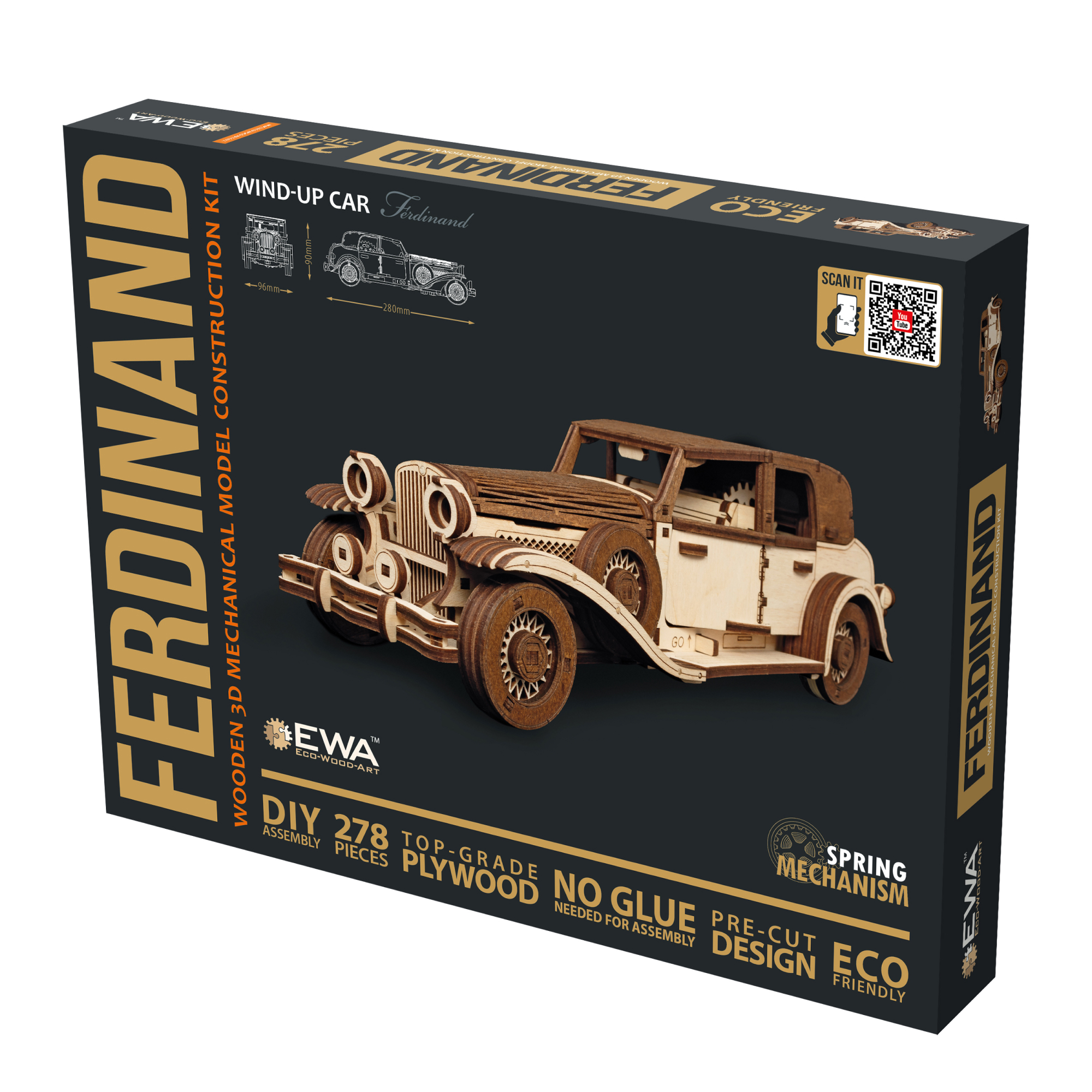 Механический деревянный конструктор EWA Фердинанд Ретро вдохновлен автомобильной модой 30-40-ых годов 20 века.