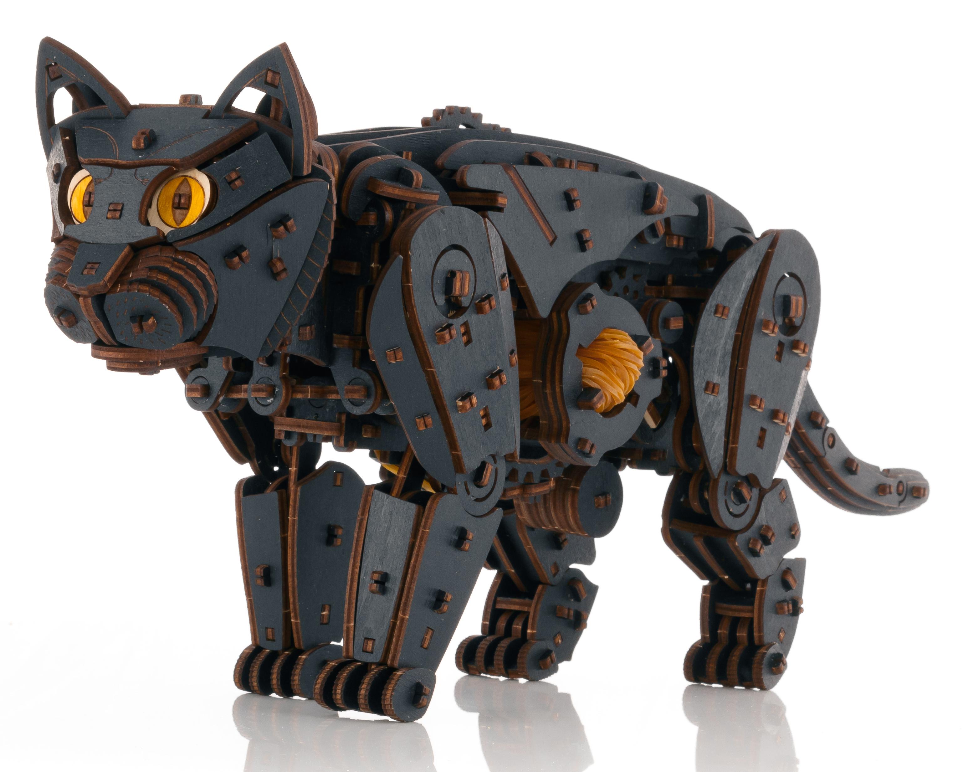 Деревянный конструктор, сборная модель Кота (Кошки) от EWA (Eco-Wood-Art) — сборная механическая модель из дерева, которая "оживает" после сборки. Большого размера, уже покрашена в черный цвет, но вы можете добавить узоры на ваш выбор. Двигается уверенно и размеренно, как настоящая.