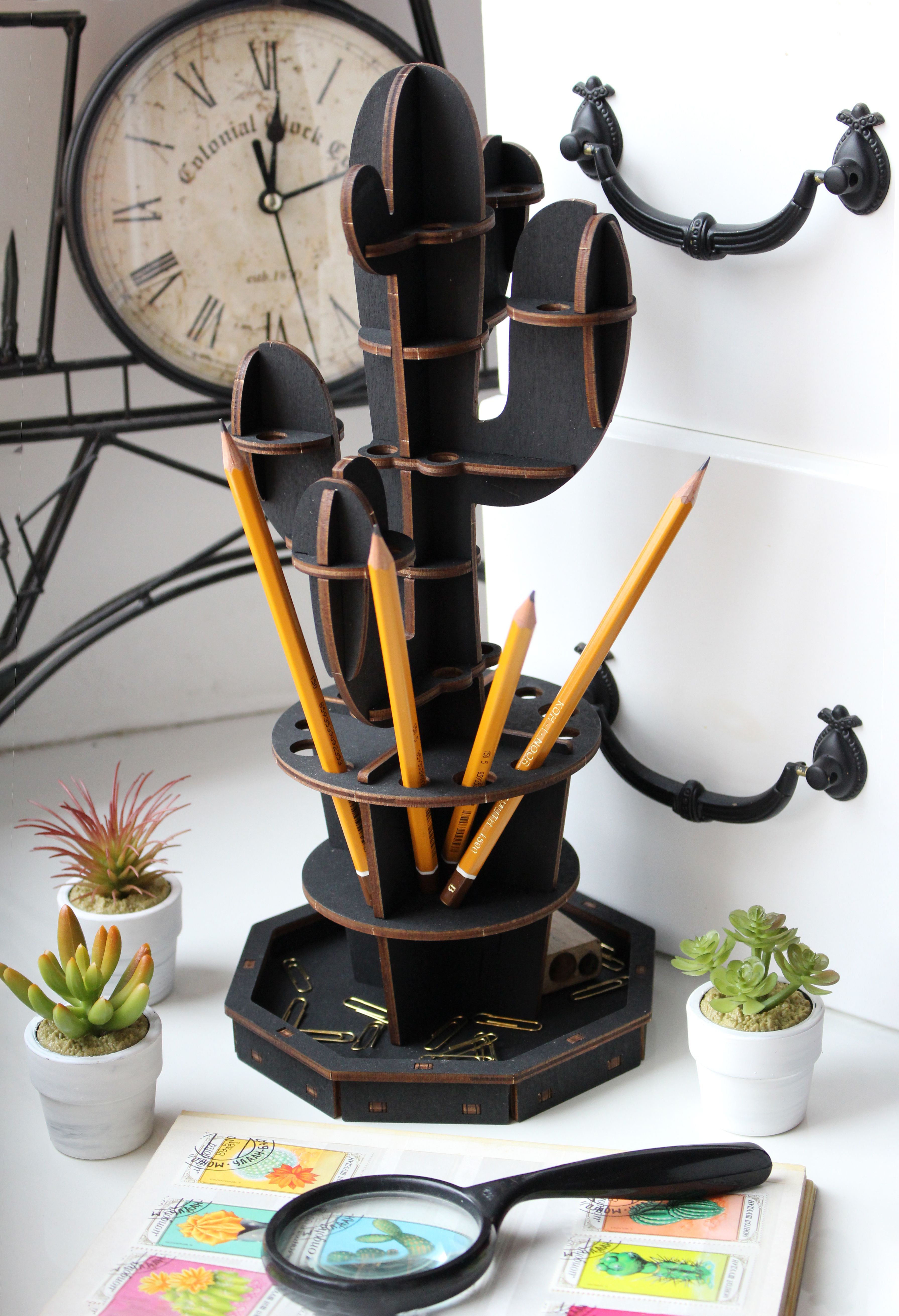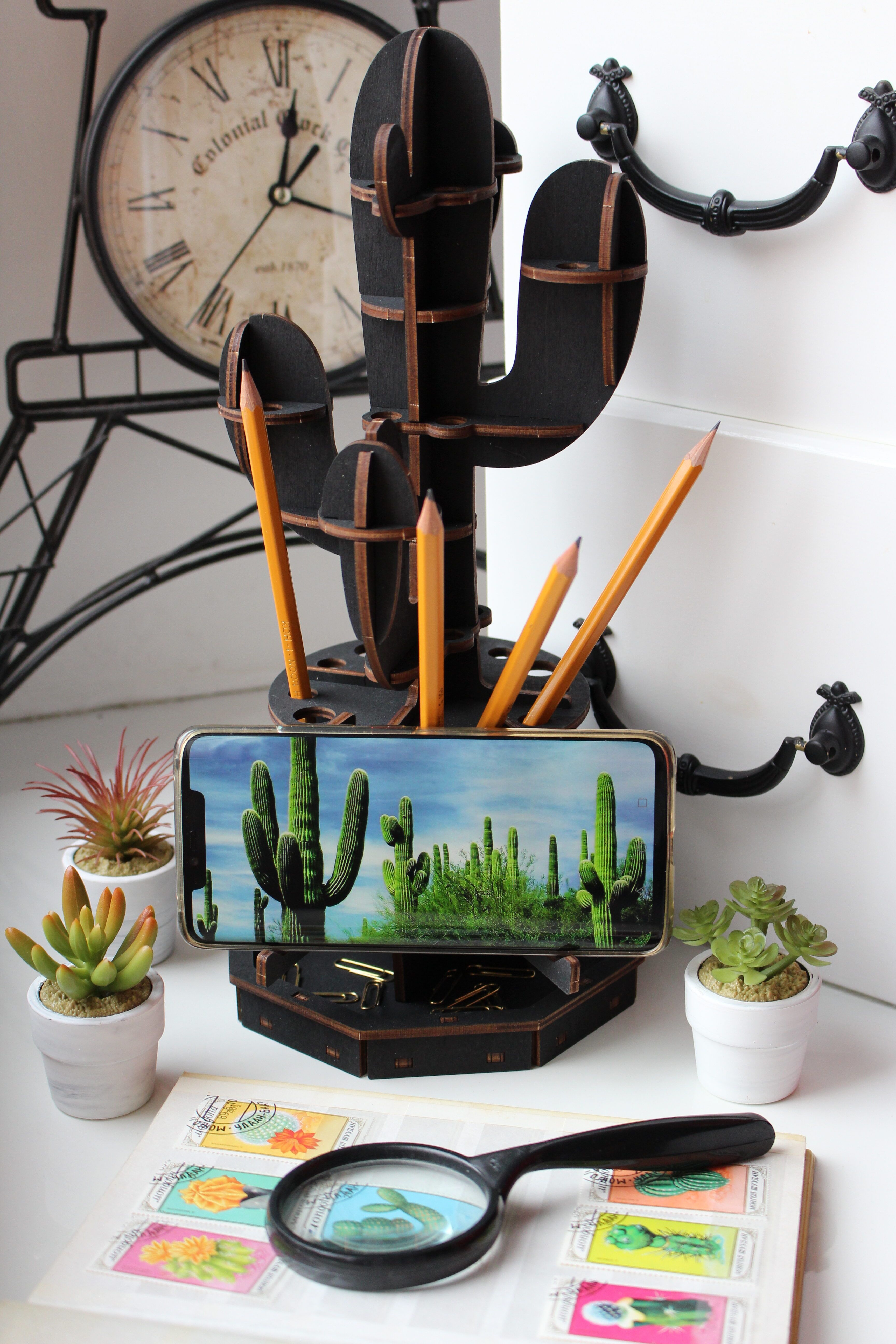 Сборная модель EWA Design "Настольный органайзер Кактус (черный)"