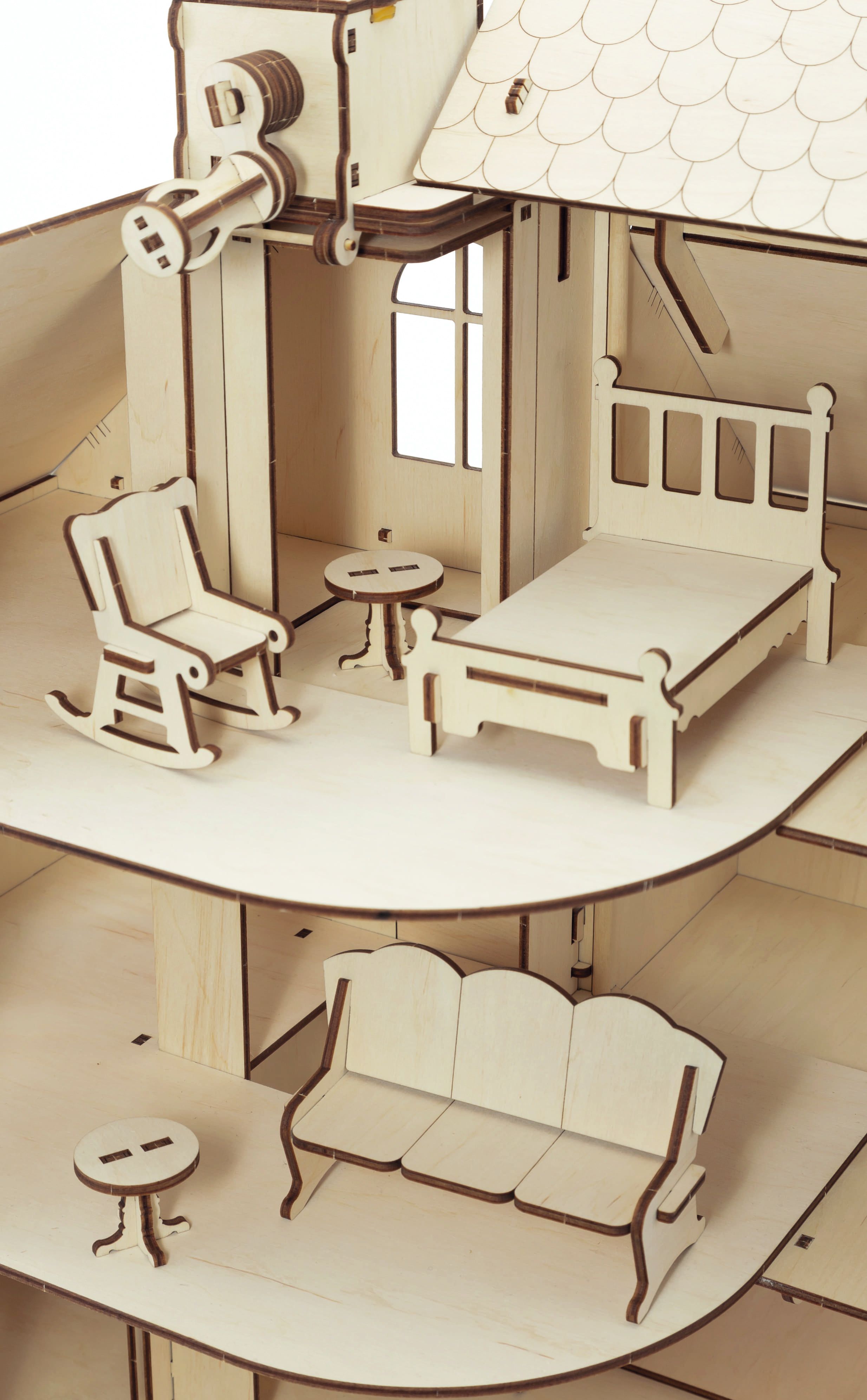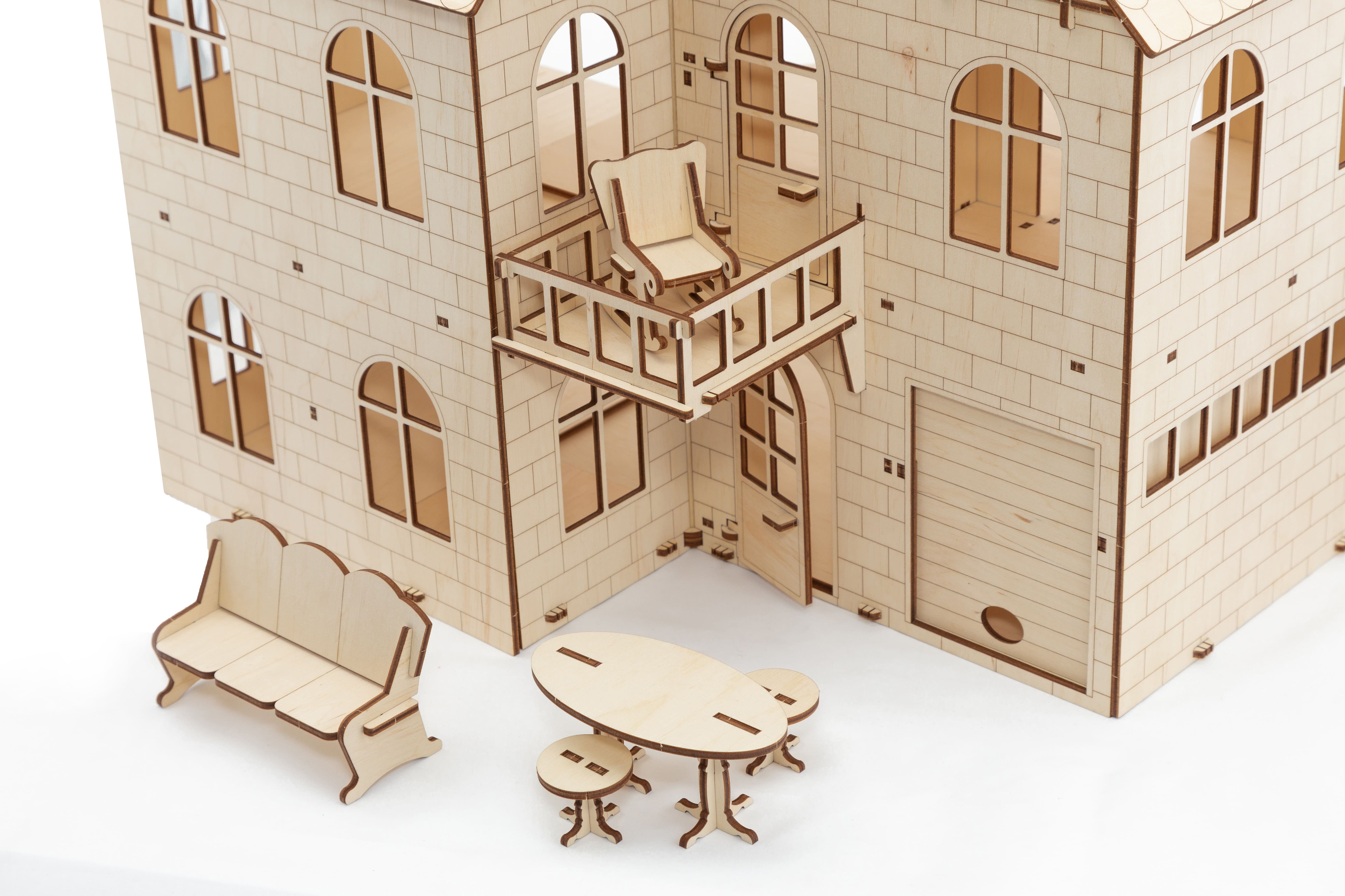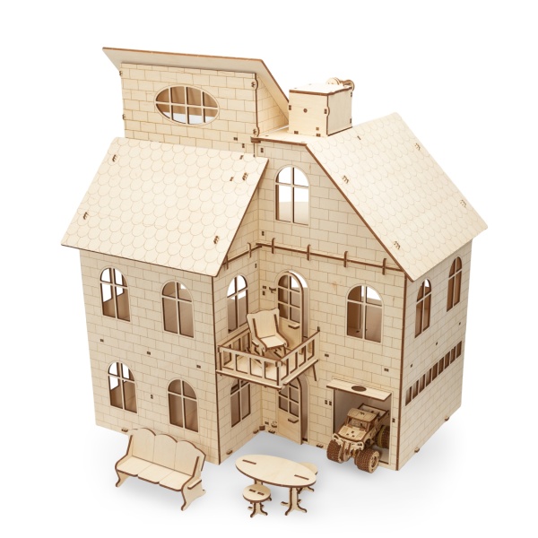Первый в своем роде от компании Eco Wood Art (Беларусь) - Сборная модель из дерева кукольный домик с лифтом и мебелью.