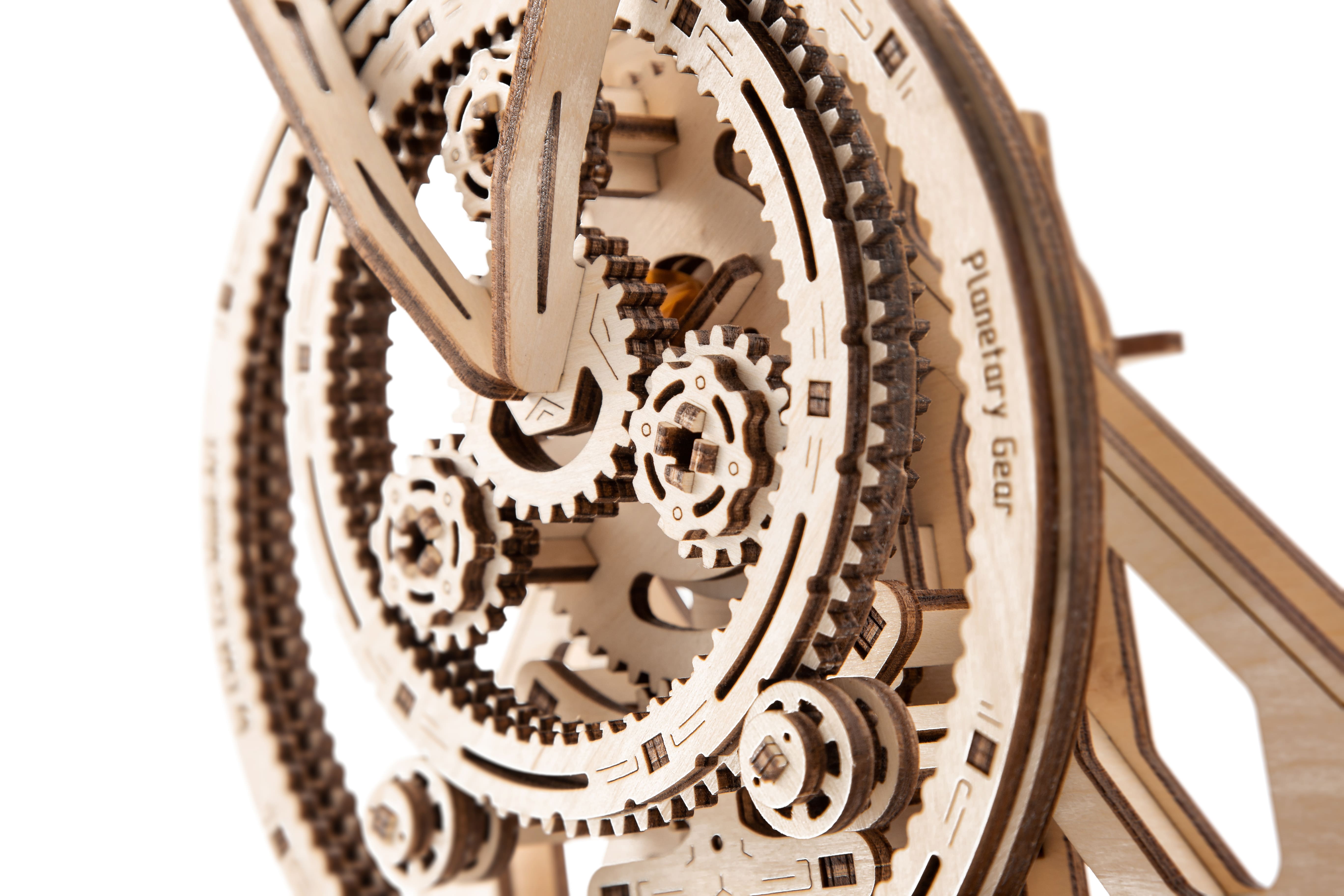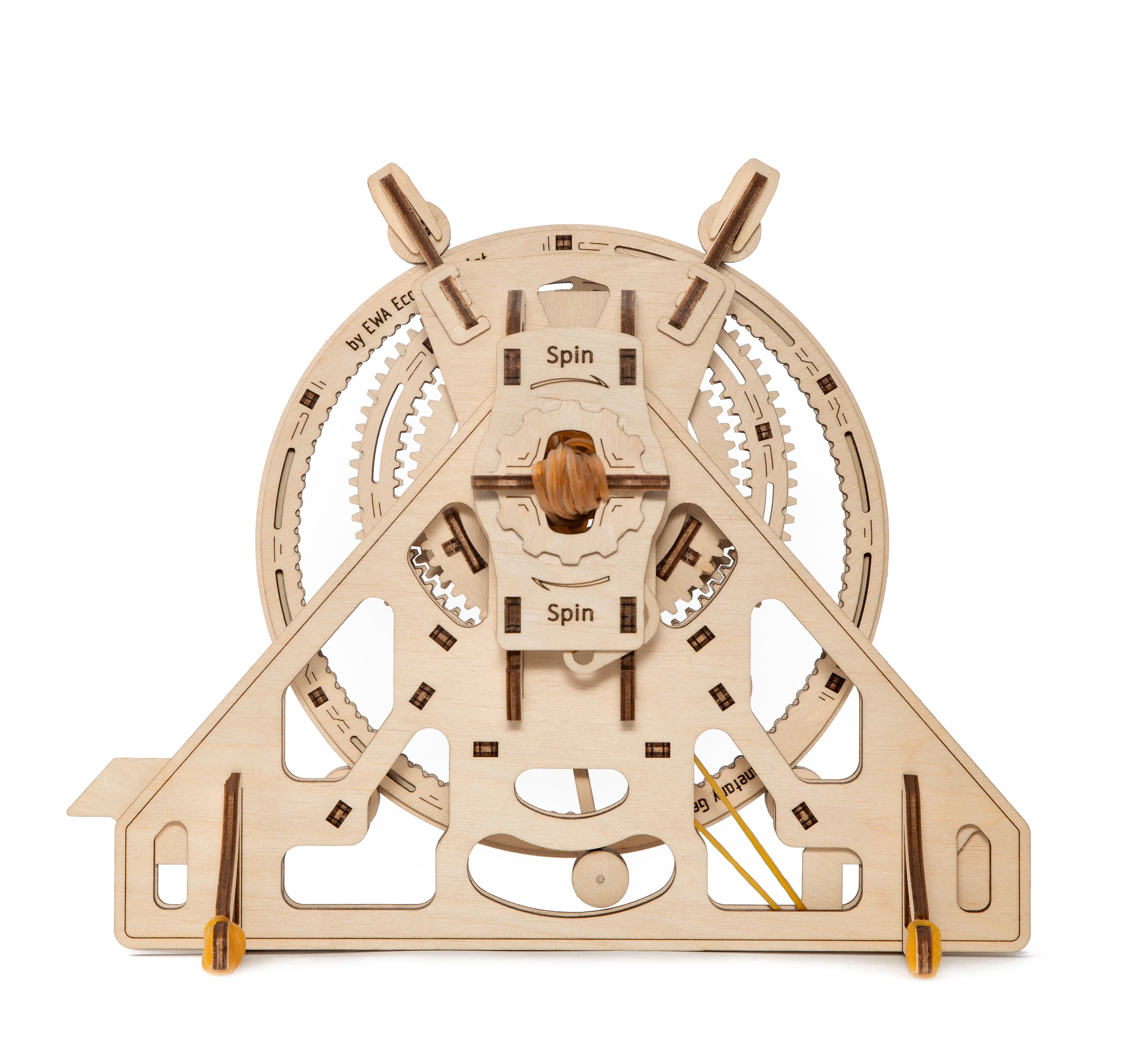 Планетарная передача собирается без клея и зубочисток. Процесс сборки очень интересный и приятный, инженерная мысль в каждой детали и текстура настоящего дерева. Просто следуя инструкции, и собирая друг за другом детали вместе – вы постепенно собираете свою планетарную модель.