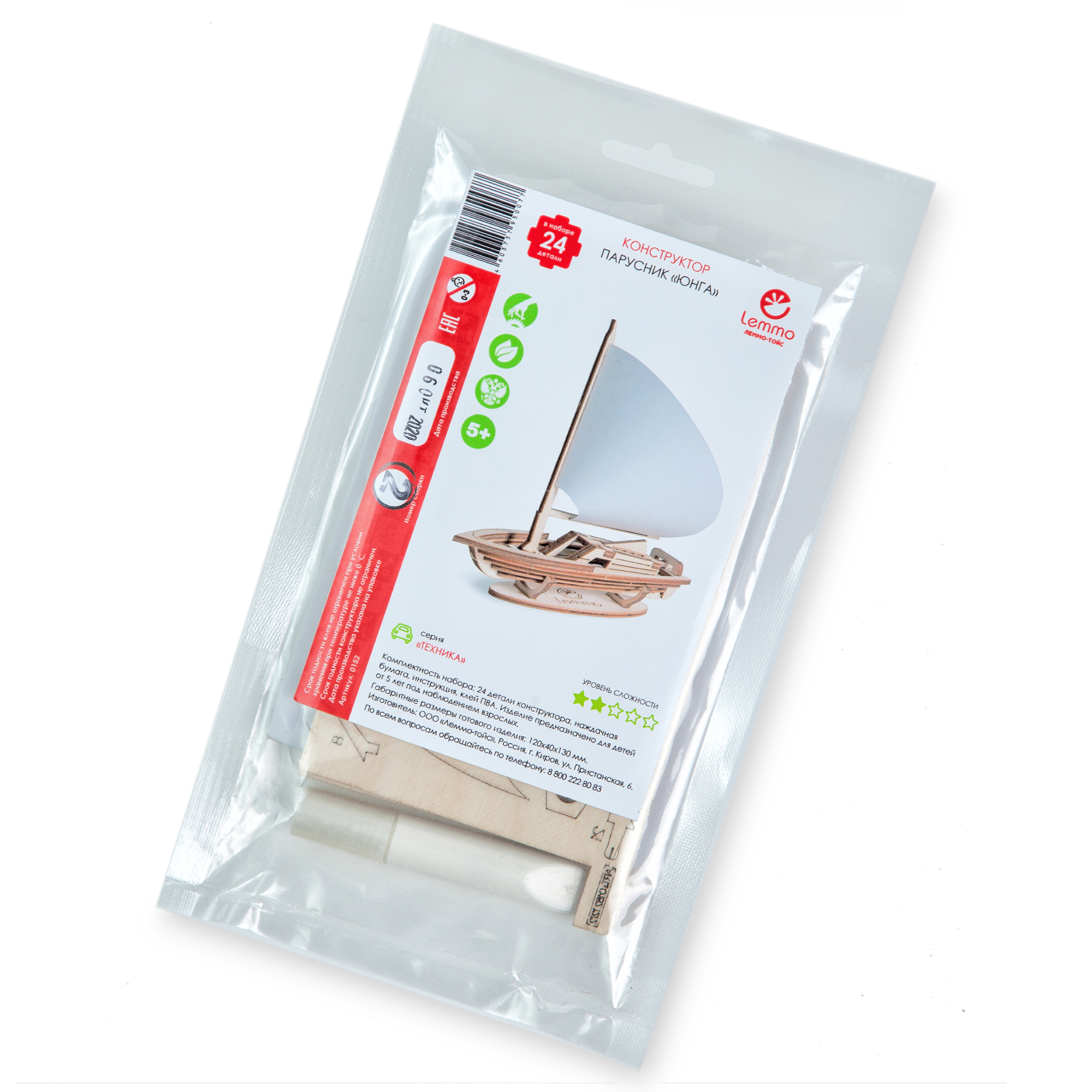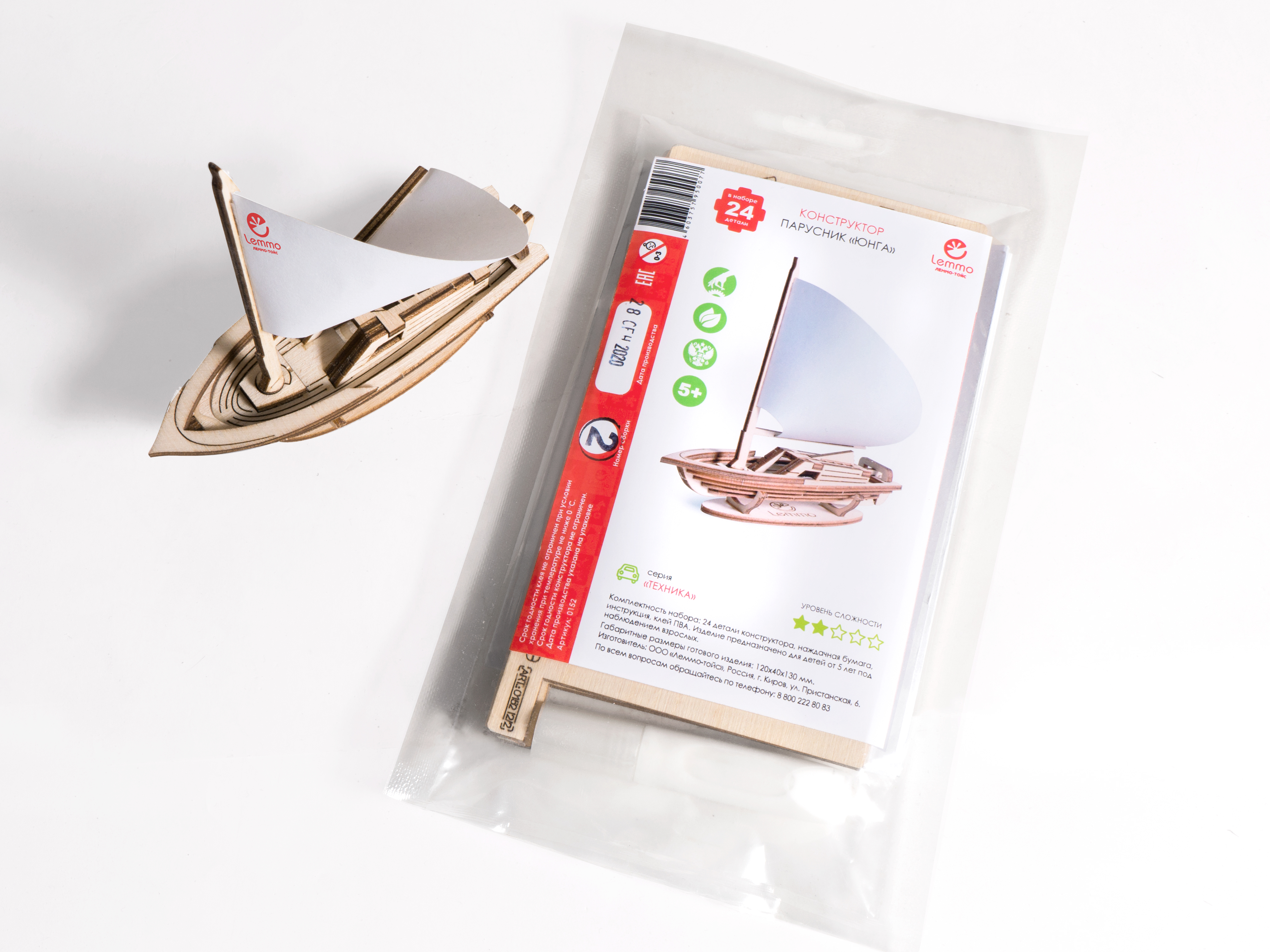 Сборная моделька из дерева "Парусник Юнга" - конструктор из серии "Корабли и яхты" от фабрики "Леммо". В наборе есть все, что нужно для сборки и для запуска в плавание.