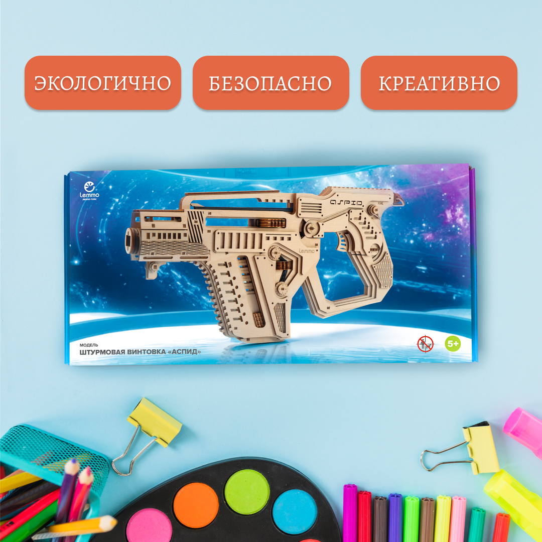 Сборная модель из дерева Lemmo Штурмовая винтовка "Аспид" - идеальный подарок мальчику и настоящему мужчине. Равнодушных не останется - это настоящее боевое деревянное оружее, но лицензия не нужна.
