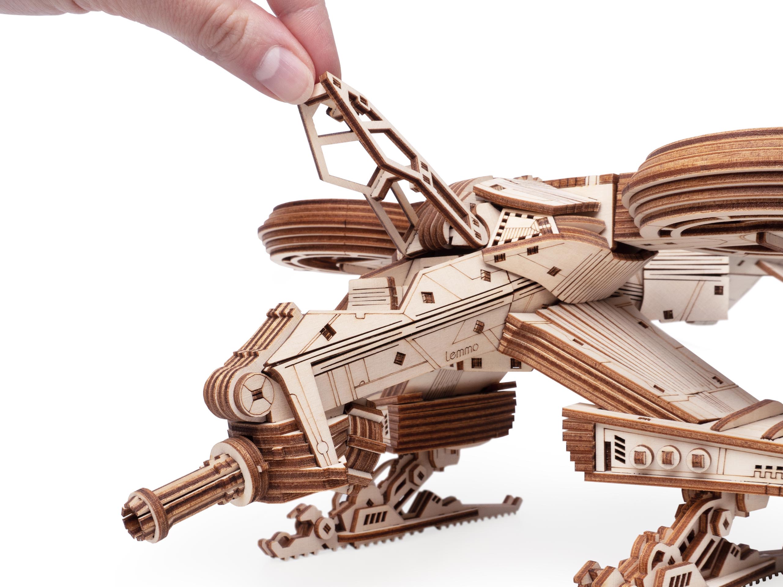 Особенностью этой сборной модели является реалистичное движение деталей: у собранного футуристического вертолета вращаются винты и турбины, а также ствол пулемета. Верхняя часть кабины открывается, хвостовой элерон поднимается и опускается, а полозковое шасси оснащено амортизацией. Кроме того, готовую модель можно раскрасить акриловыми красками, добавив ей индивидуальности и яркости.