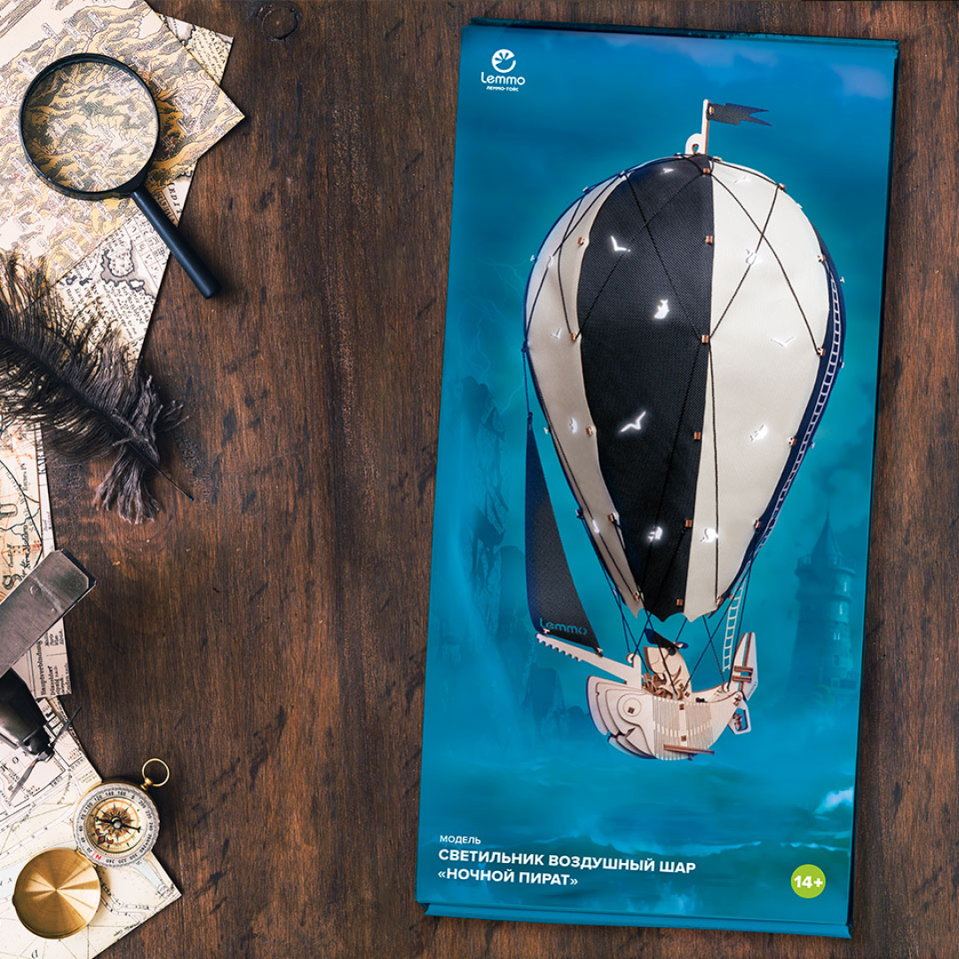 Светильник, ночник из дерева Lemmo Воздушный шар "Ночной пират" - великолепный подарок для мальчика, девочки и взрослых, любителей приключений и моделирования.