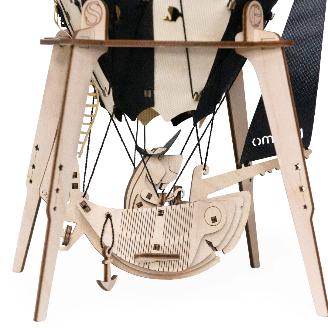 У собранной модели из лодки достается фигурка бобра-пирата. Баллон воздушного шара состоит из ткани двух цветов, а также обвязан нитью. У лодки вращаются винт и штурвал, а также поворачивается руль направления. Модель имеет источник искусственного освещения. Воздушный шар можно подвесить за нить или поместить на подставку. Игрушку можно раскрасить акриловыми красками.