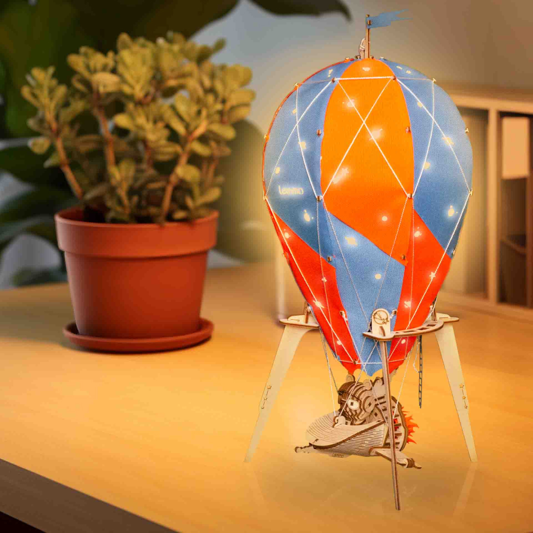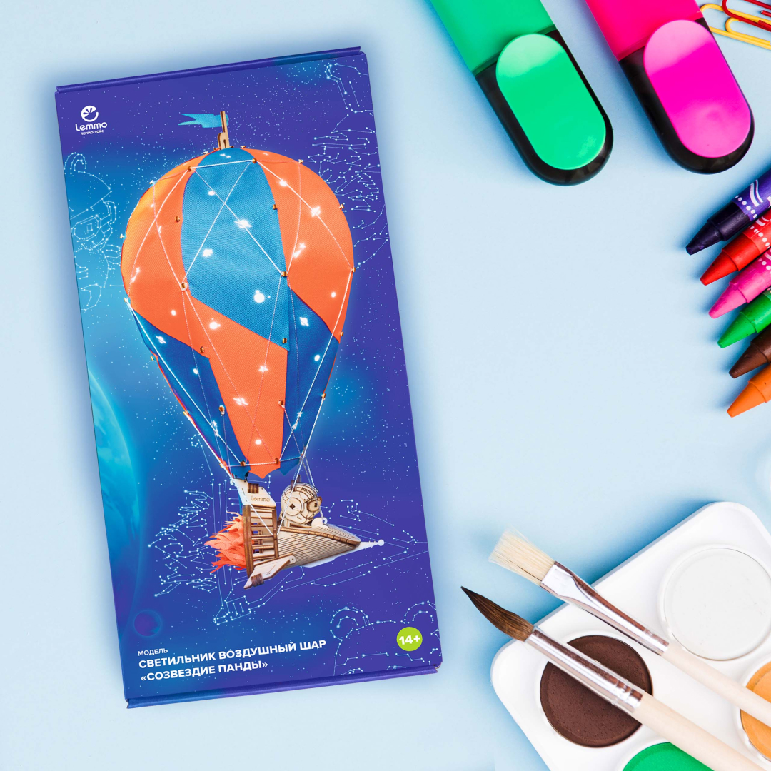Светильник, ночник из дерева Lemmo Воздушный шар "Созвездие панды" - великолепный подарок для мальчика, девочки и взрослых, любителей приключений и моделирования.
