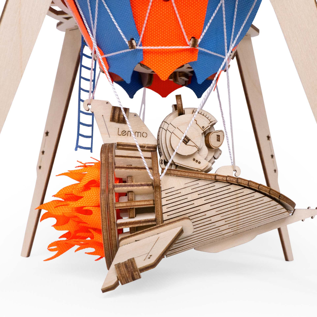 У собранной модели из ракеты достается фигурка панды. Баллон воздушного шара состоит из ткани двух цветов, а также обвязан нитью. Модель имеет источник искусственного освещения. Воздушный шар можно подвесить за нить или поместить на подставку. Игрушку можно раскрасить акриловыми красками.